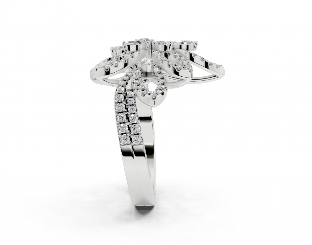 14K white gold ring with 0.19ct. Marquise Cut diamonds and 0.39ct. round diamonds. Ring weight is approximately 4.50 grams. Go to "Specifications" for more details about this product.