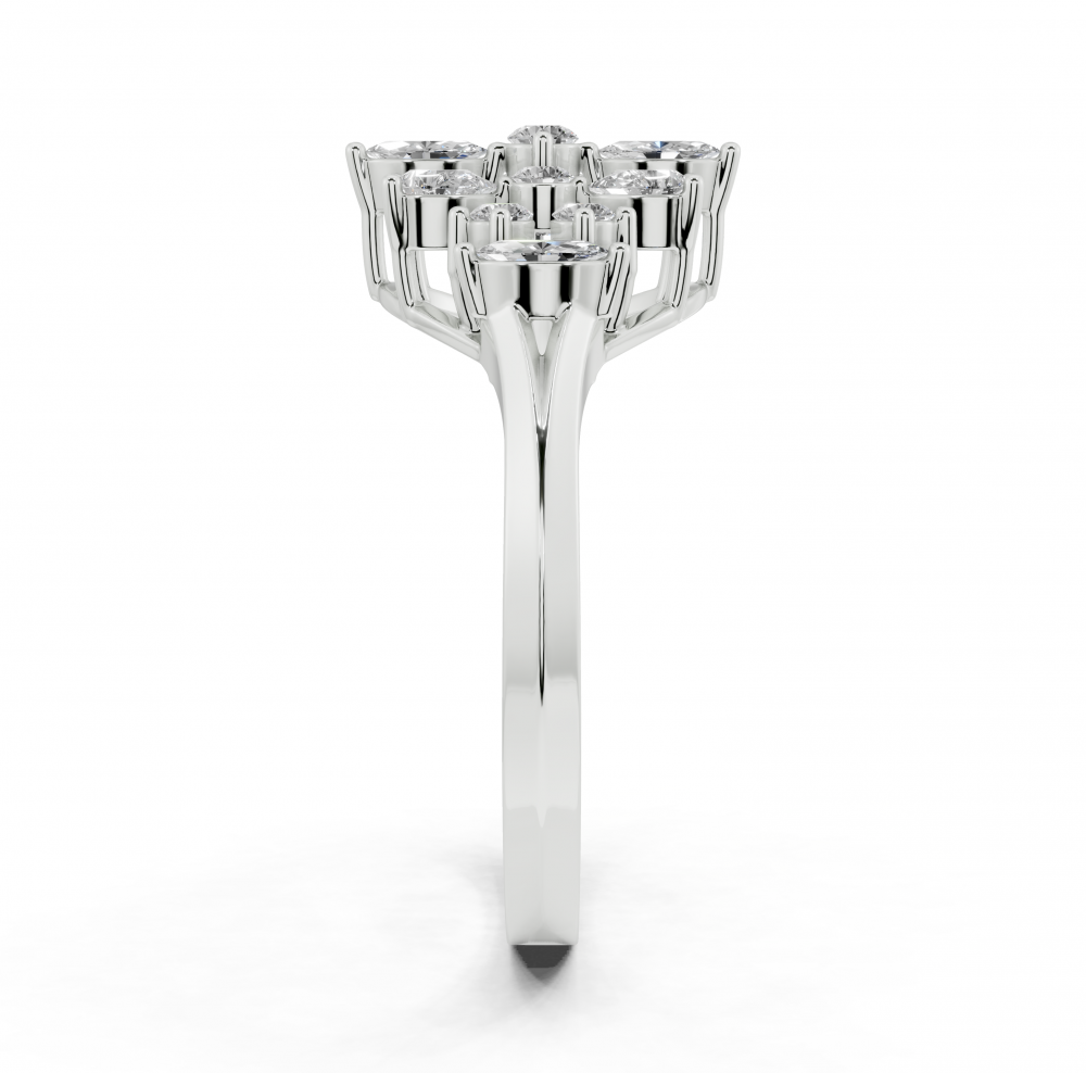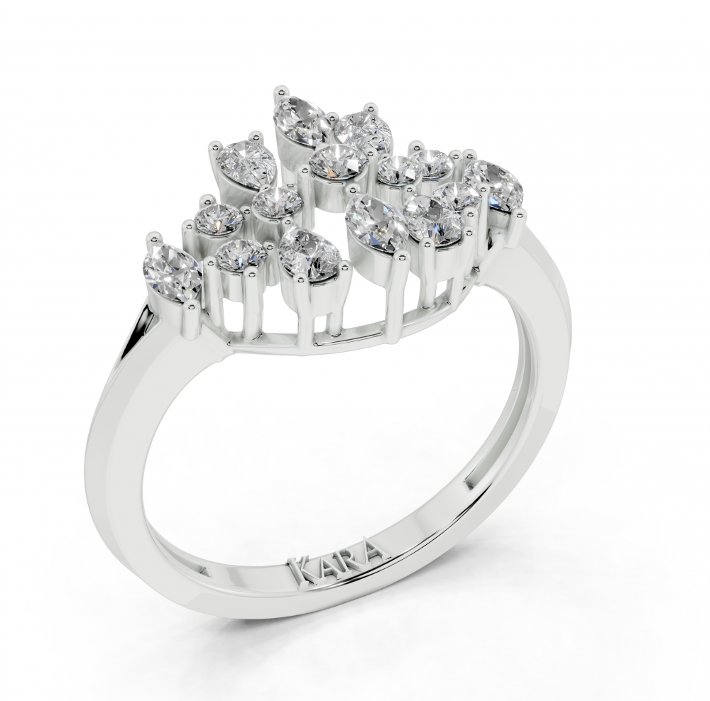 14K white gold ring with 0.21ct Pear Cut diamonds, 0.15ct Marquise Cut diamonds and 0.14ct round diamonds. Ring weight is approximately 3 grams. The ring can also be made to order in 18K gold. We can modify the design according to your budget.