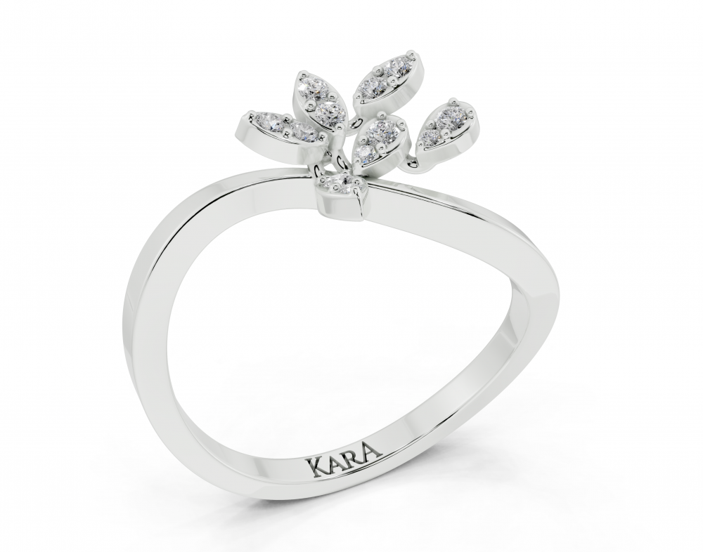 14K white gold ring with 0.21ct Pear Cut diamonds and 0.19ct round diamonds. Ring weight is approximately 3.00 grams. The ring can also be made to order in 18K gold. We can modify the design according to your budget.