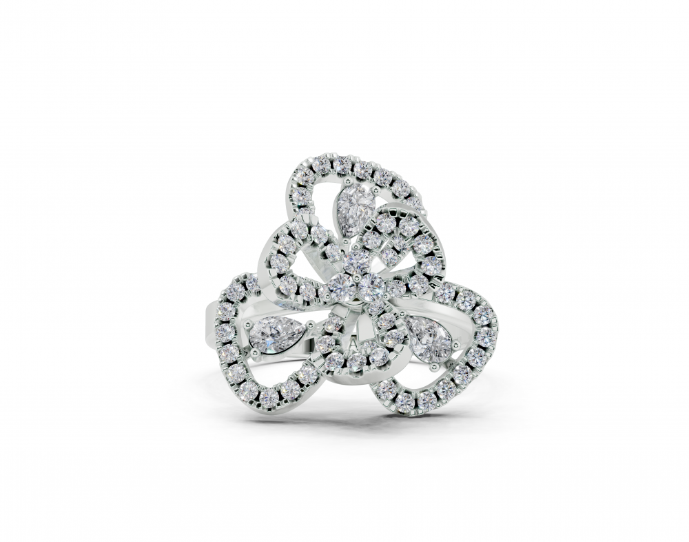 14K white gold ring with 0.21ct Pear Cut diamonds and 0.41ct round diamonds. Ring weight is approximately 4 grams. Go to "Specifications" for more details about this product.