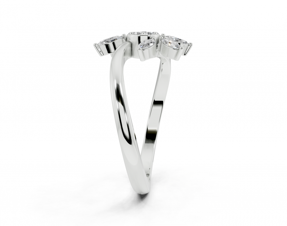 14K white gold ring with 0.22 ct Marquise Cut diamonds and 0.07 ct round diamonds. The weight of the ring is approximately 2.50 grams.