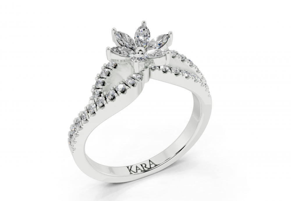 14K white gold ring with 0.22ct Marquise Cut diamonds and 0.29ct round diamonds. Ring weight is approximately 4 grams. The ring can also be made to order in 18K gold. We can modify the design according to your budget.