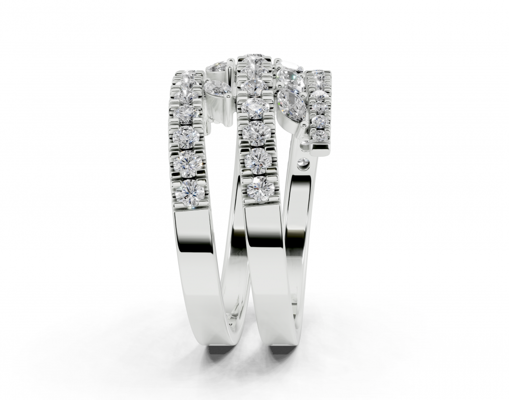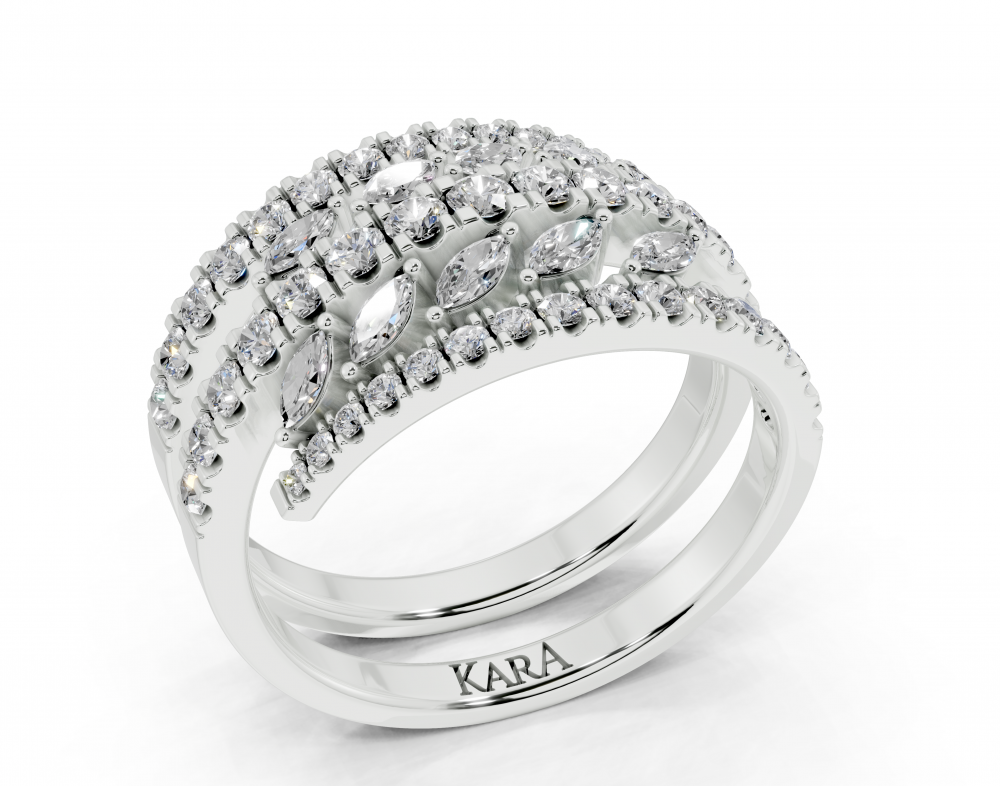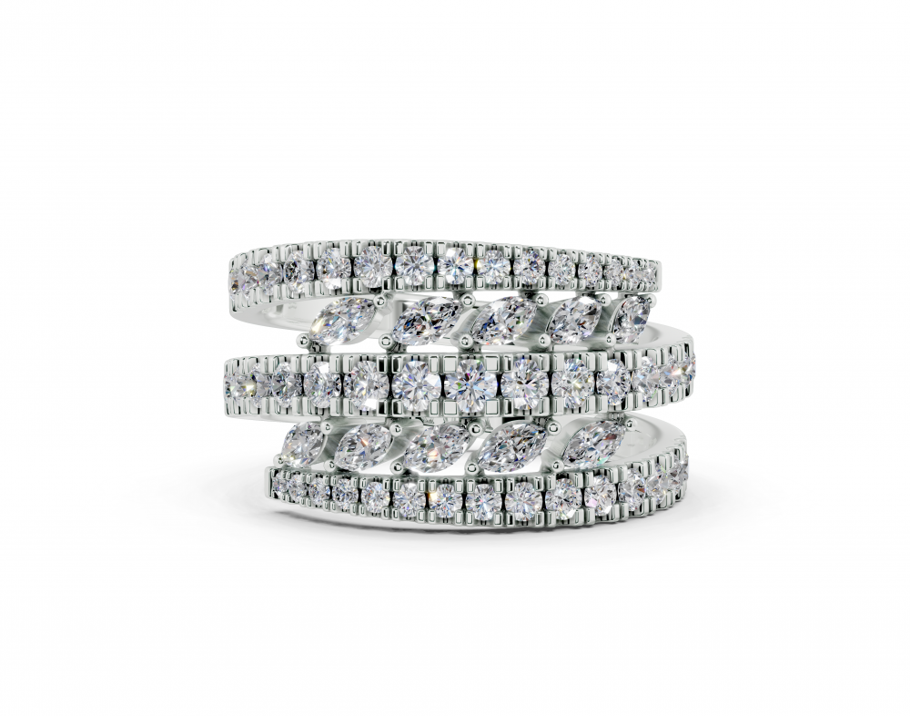 14K white gold ring with 0.23ct Marquise Cut diamonds and 0.70ct round diamonds. Ring weight is approximately 5 grams. The ring can also be made to order in 18K gold. We can modify the design according to your budget.