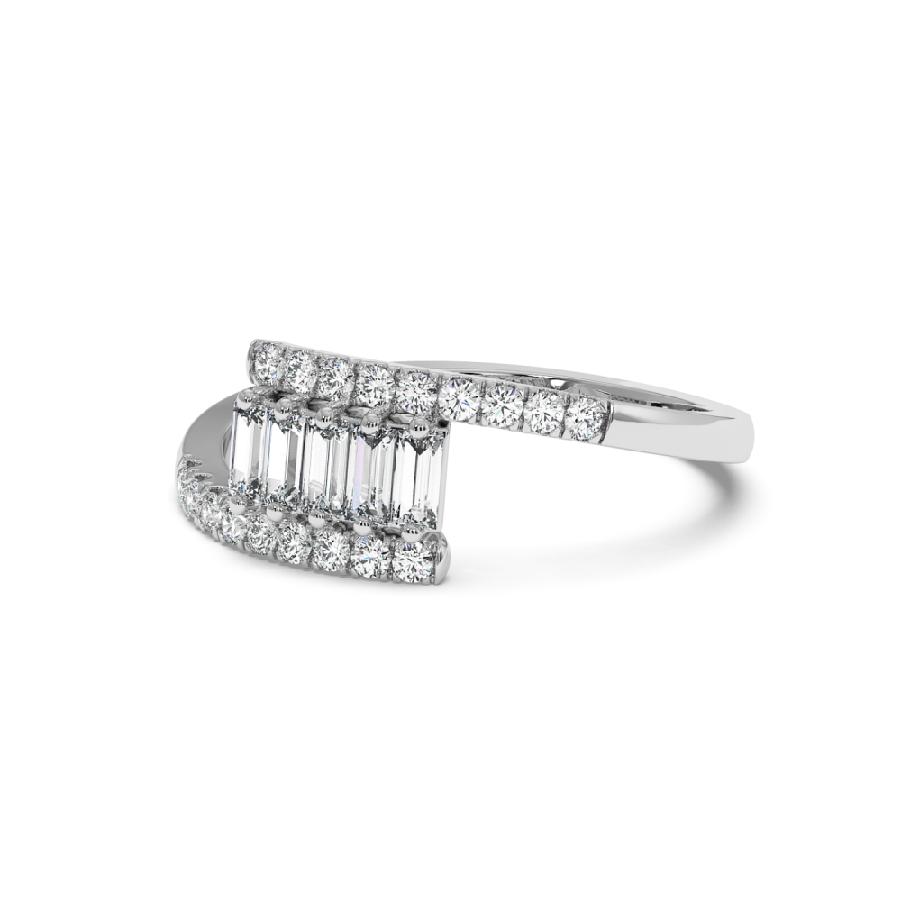 14K white gold ring with baget diamonds of 0.26 ct and round diamonds of 0.13 ct. The weight of the ring is 1.87 grams. We can modify the design according to your budget. We can choose the characteristics of the diamonds (cut, color, clarity, carat) to create the perfect diamond ring. Go...