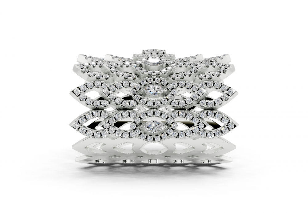 14K white gold ring with 0.26ct Marquise Cut diamonds and 1.72ct round diamonds. Ring weight is approximately 14 grams. Go to "Specifications" for more details about this product.