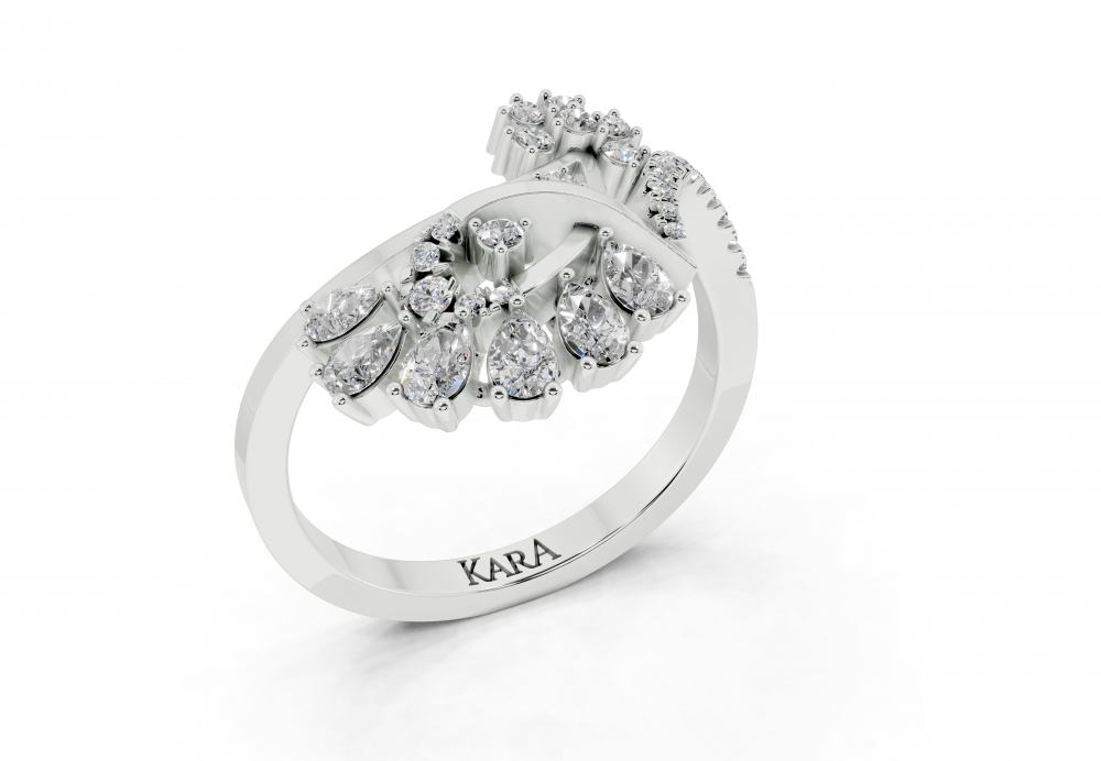 14K white gold ring with 0.31 ct. Pear diamonds and 0.14 ct. Round diamonds. Ring weight is approximately 3.00 grams. Go to "Specifications" for more details about this product.