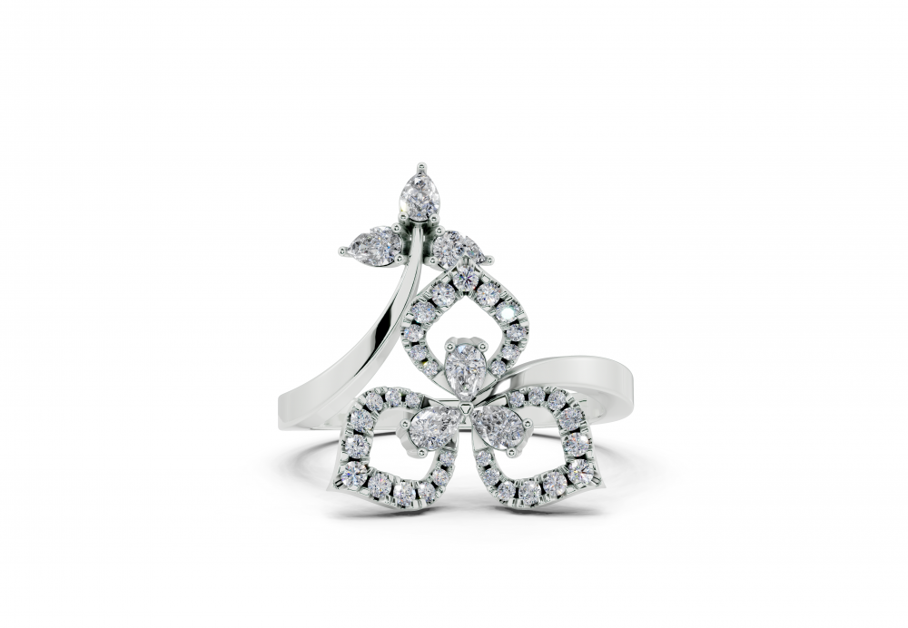 14K white gold ring with 0.31 ct. Pear diamonds and 0.15 ct. Round diamonds. Ring weight is approximately 3.50 grams. Go to "Specifications" for more details about this product.