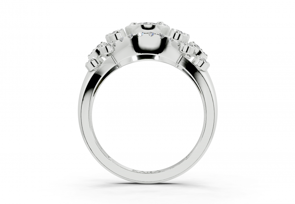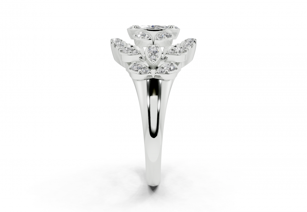 14K white gold ring with 0.31ct Marquise Cut diamonds, 0.07ct Princess Cut diamonds and 0.33ct round diamonds. Ring weight is approximately 5.00 grams. The ring can also be made to order in 18K gold. We can modify the design according to your budget.