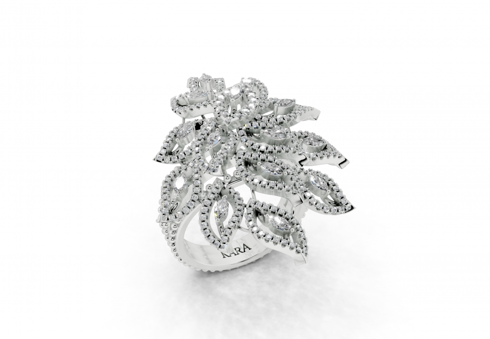 14K white gold ring with 0.31 ct. Marquise Cut diamonds and 0.55 ct. round diamonds. Ring weight is approximately 12 grams. Go to "Specifications" for more details about this product.