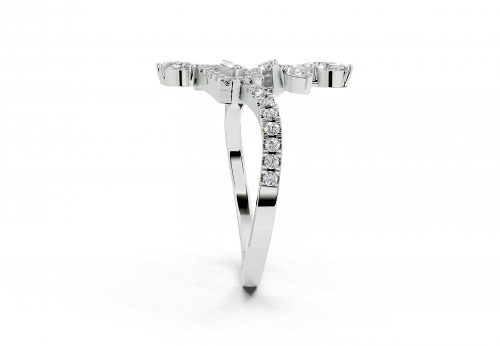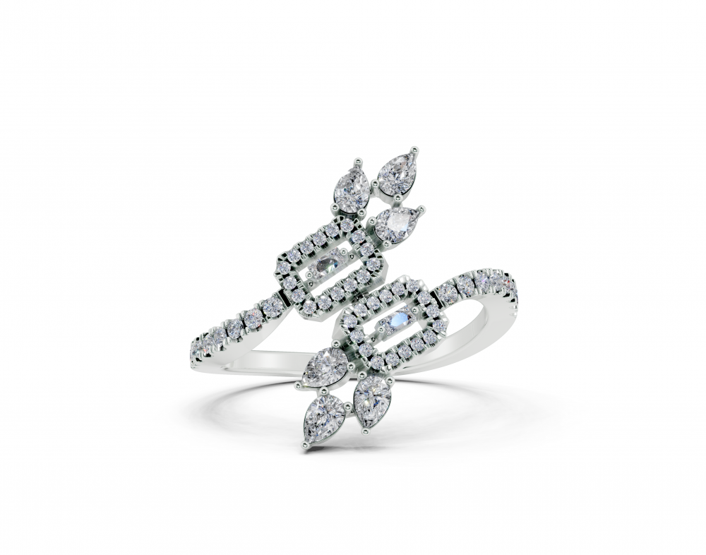 14K white gold ring with 0.31ct Pear Cut diamonds, 0.02ct baget diamonds and 0.16ct round diamonds. Ring weight is approximately 2.50 grams. Go to "Specifications" for more details about this product.