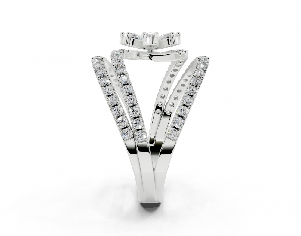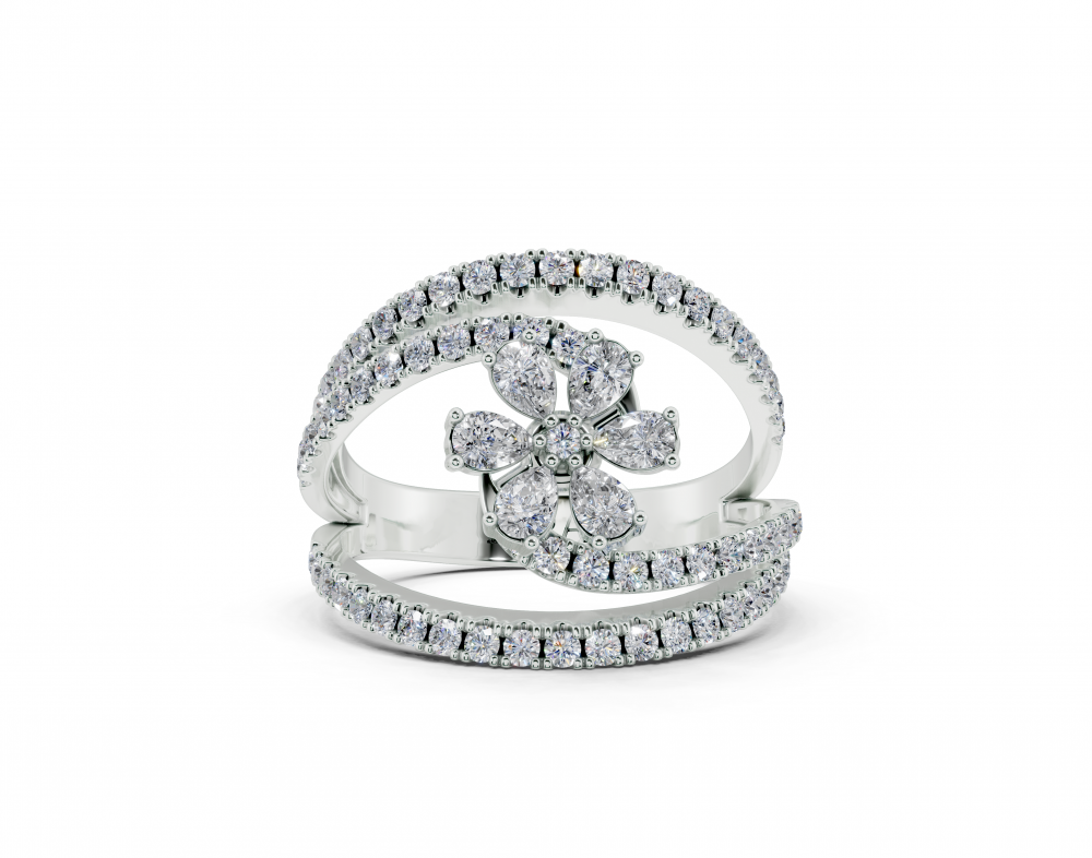 14K white gold ring with 0.31ct Pear Cut diamonds and 0.56ct round diamonds. Ring weight is approximately 4 grams. The ring can also be made to order in 18K gold. We can modify the design according to your budget.