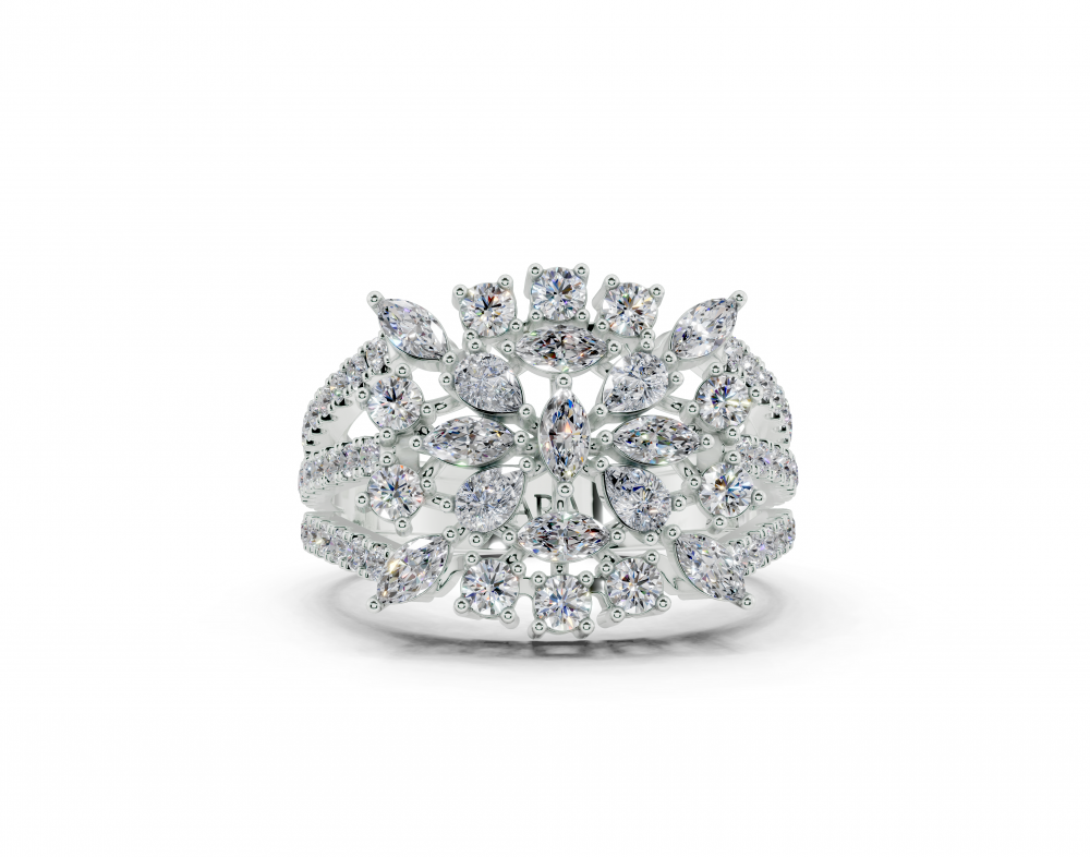 14K white gold ring, with 0.32ct Marquise Cut diamonds, 0.22ct Pear Cut diamonds and 0.79ct Round diamonds. Ring weight is approximately 6 grams. Go to "Specifications" for more details about this product.