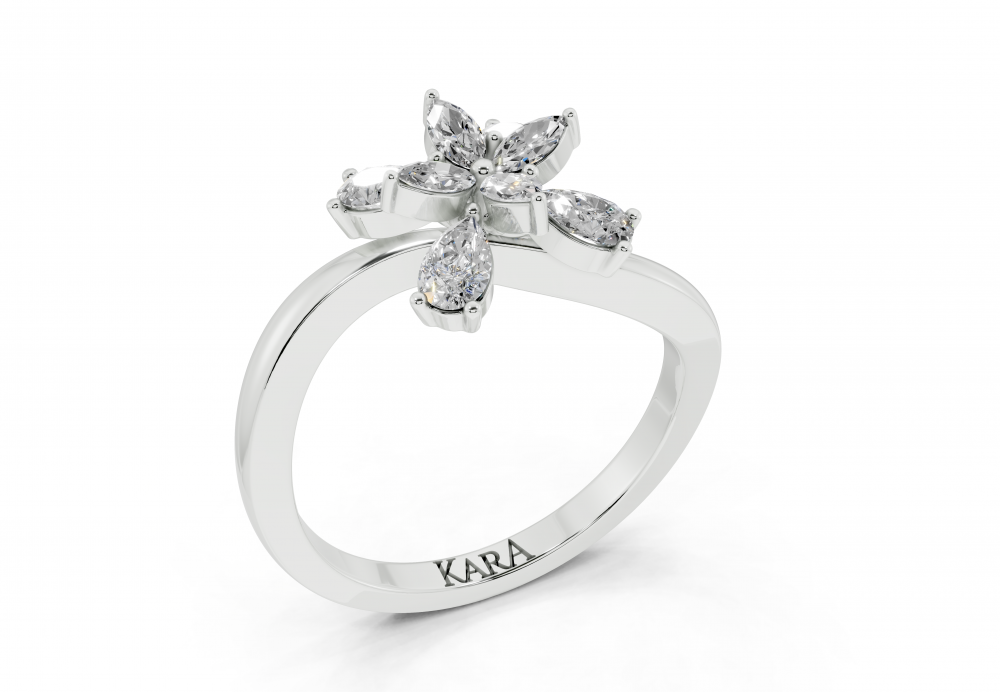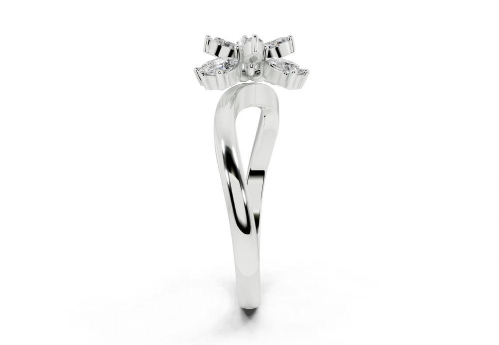 14K white gold ring with 0.35 ct. Pear diamonds and 0.15 ct. Round diamonds. Ring weight is approximately 4.50 grams. Go to "Specifications" for more details about this product.