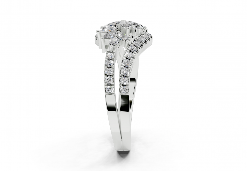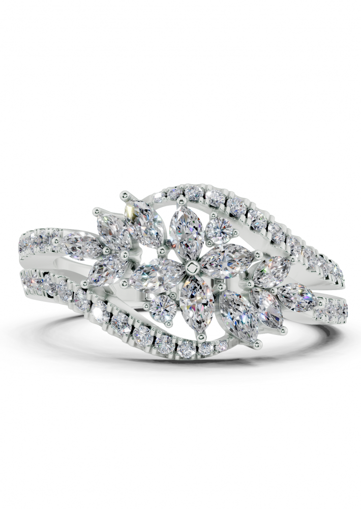 14K white gold ring with 0.36ct Marquise Cut diamonds and 0.31ct round diamonds. Ring weight is approximately 4 grams. The ring can also be made to order in 18K gold. We can modify the design according to your budget.