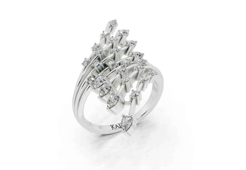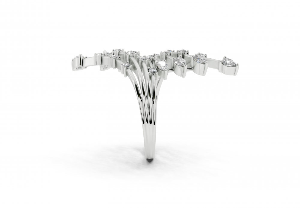 14K white gold ring with 0.41 ct. Pear diamonds and 0.20 ct. Round diamonds. Ring weight is approximately 5.00 grams. Go to "Specifications" for more details about this product.