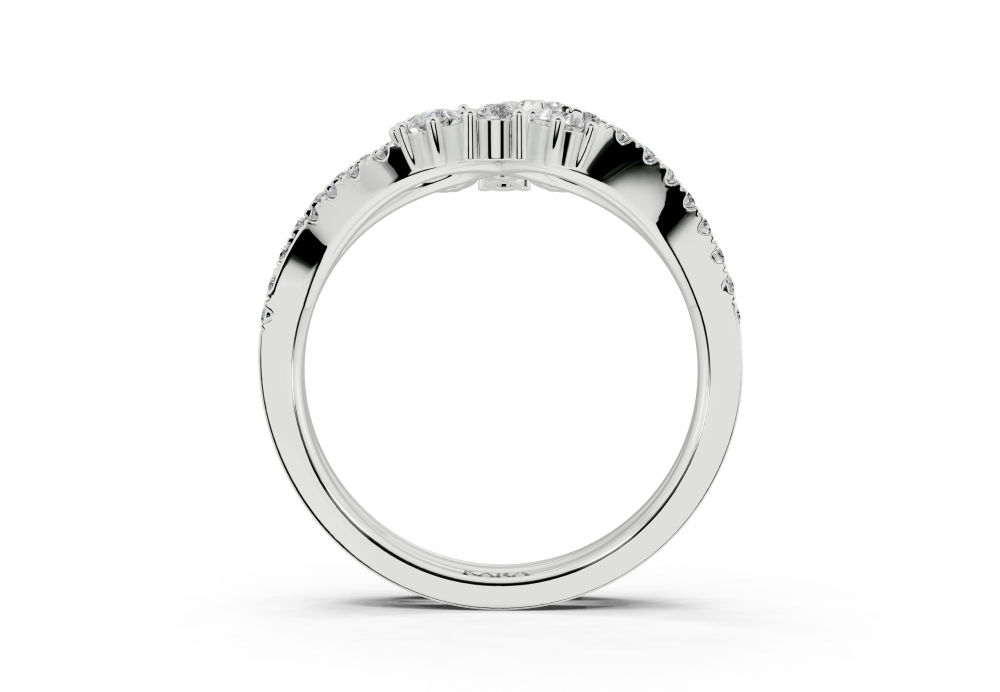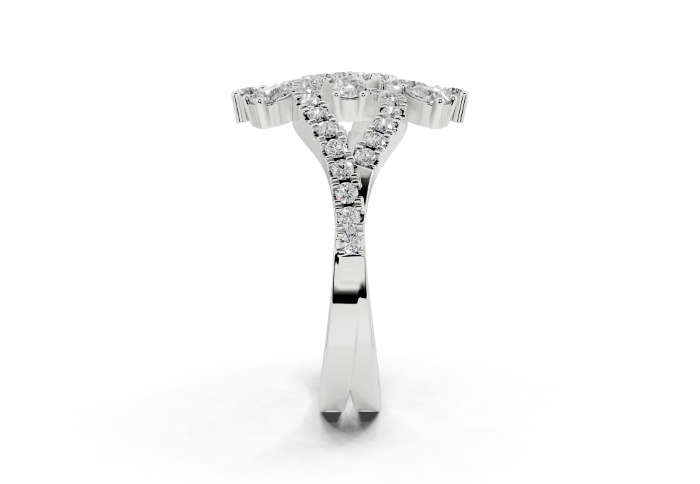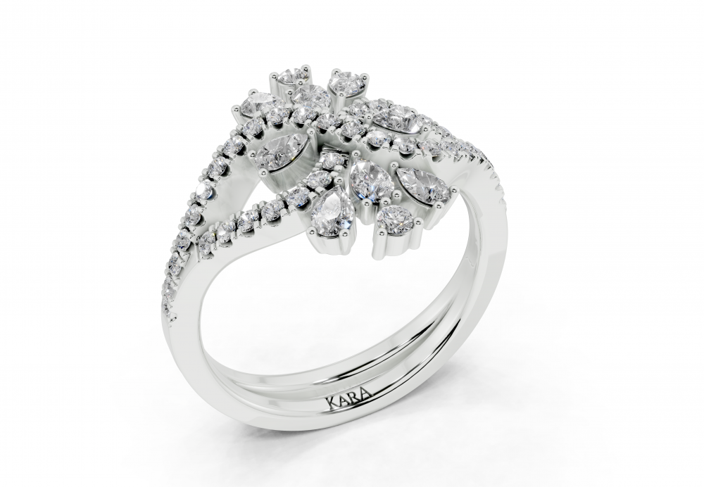 14K white gold ring with 0.41 ct Pear Cut diamonds and 0.32 ct round diamonds. Ring weight is approximately 4.50 grams. The ring can also be made to order in 18K gold. We can modify the design according to your budget.