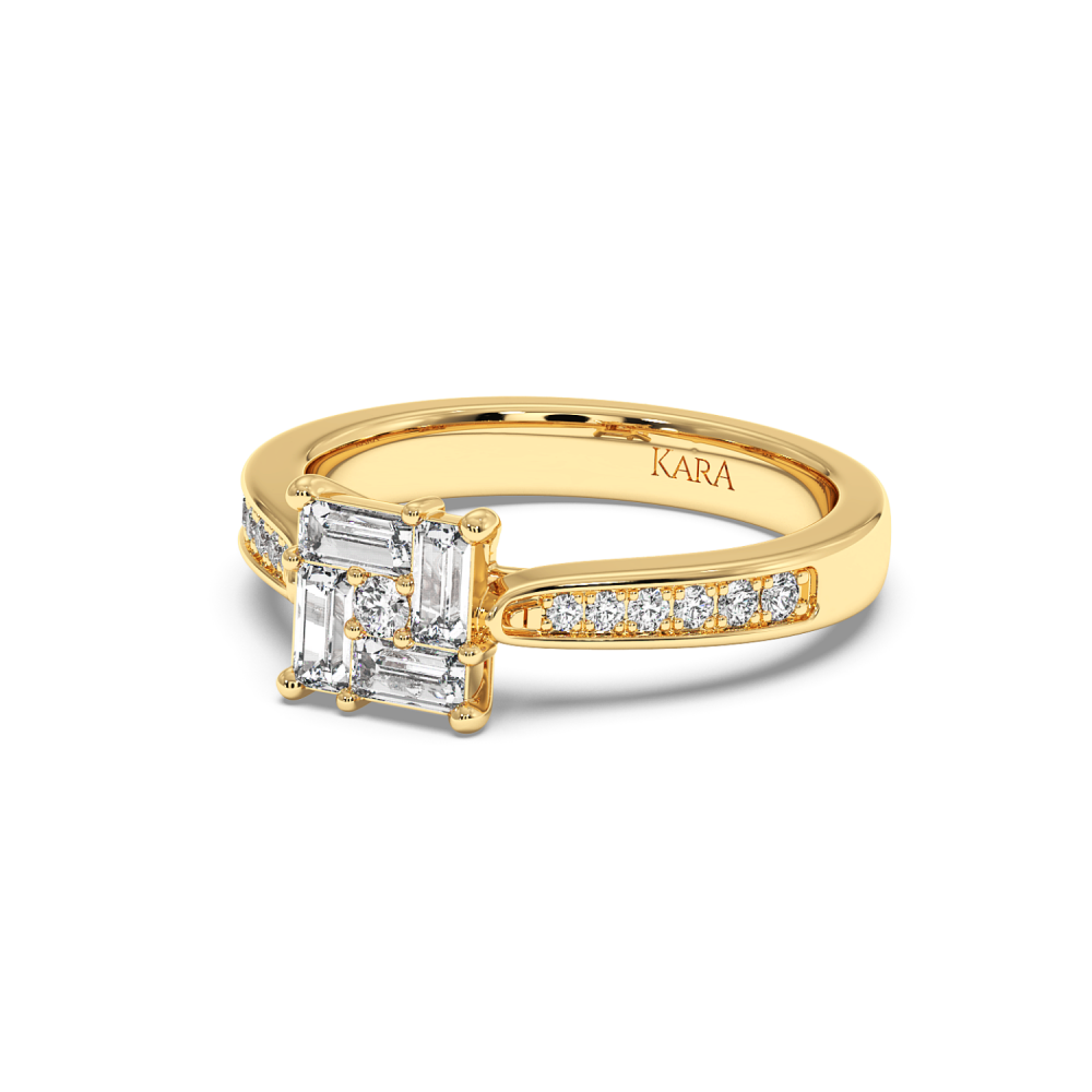 14K gold ring with 0.43ct baget diamonds and 0.17ct round diamonds. Ring weight is approximately 2.50 grams. The ring can also be made to order in 18K gold. We can modify the design according to your budget. We can choose the characteristics of the diamonds (cut, color, clarity, carat) to...