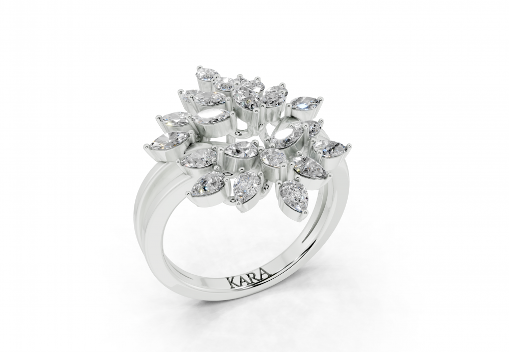 14K white gold ring with 0.48ct Marquise Cut diamonds and 0.51ct Pear Cut diamonds. Ring weight is approximately 4 grams. The ring can also be made to order in 18K gold. We can modify the design according to your budget.