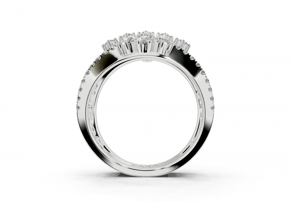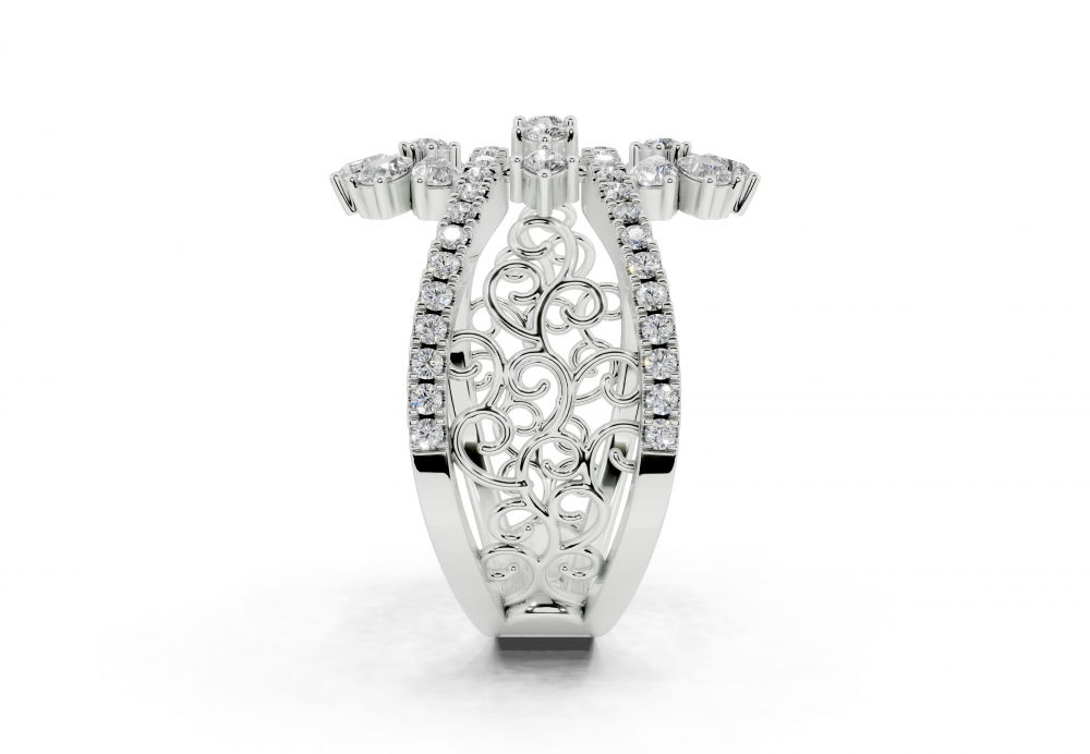 14K white gold ring with 0.52 ct. Pear diamonds and 0.49 ct. Round diamonds. Ring weight is approximately 6.00 grams. Go to "Specifications" for more details about this product.