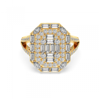 Diamond ring in 14 K white gold with Baget diamonds of 0.53 ct, marquise diamonds of 0.24 ct and round diamonds of 0.60 ct. The weight of the ring is 5.42 grams. The ring can also be made to order in 18K gold. We can modify the design according to your budget. We can choose the...