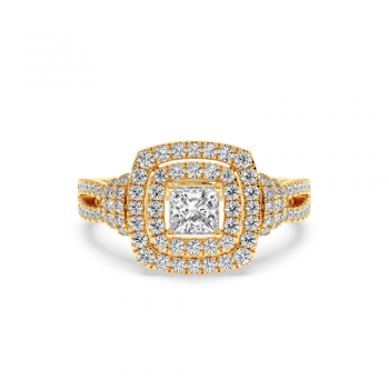 Ring in 14K gold, with central Princess Cut diamond of 0.53ct and round side diamonds of 0.66ct. Ring weight is approximately 2.70 grams. We can modify the design to suit your budget. We can choose the characteristics of the diamonds (cut, color, clarity, carat) to create the perfect diamond...