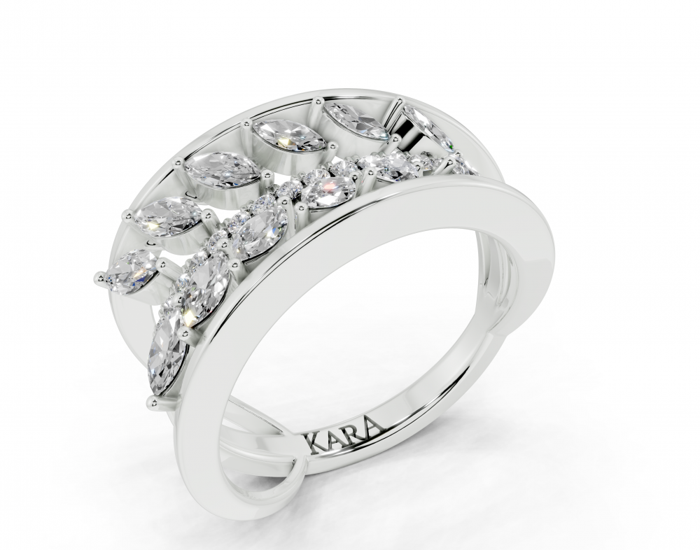 14K white gold ring with 0.53ct Marquise Cut diamonds and 0.14ct round diamonds. Ring weight is approximately 4.50 grams. The ring can also be made to order in 18K gold. We can modify the design according to your budget.