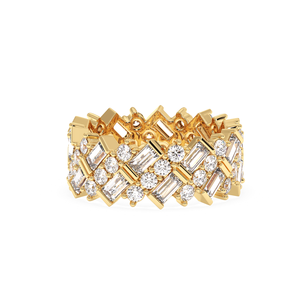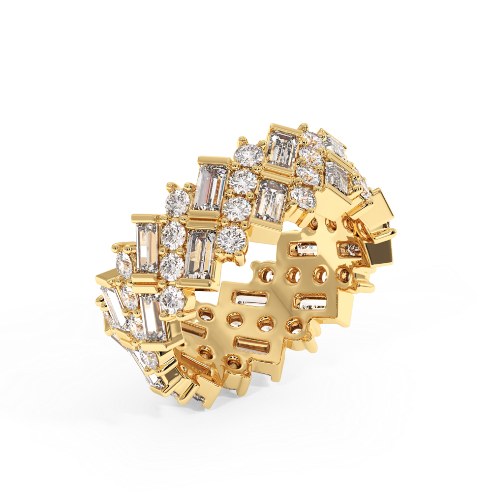 14K gold ring with 0.54ct baget diamonds and 1.53ct round diamonds. Ring weight is approximately 7.10 grams. The ring can also be made to order in 18K gold. We can modify the design according to your budget. We can choose the characteristics of the diamonds (cut, color, clarity, carat) to...