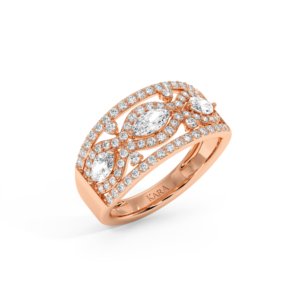 We can choose the characteristics of the diamonds (cut, color, clarity, carat) to create the perfect diamond ring.