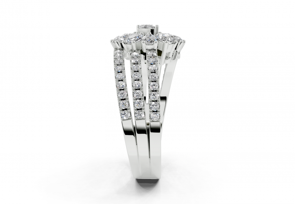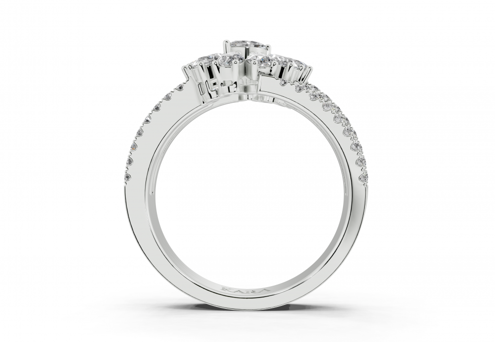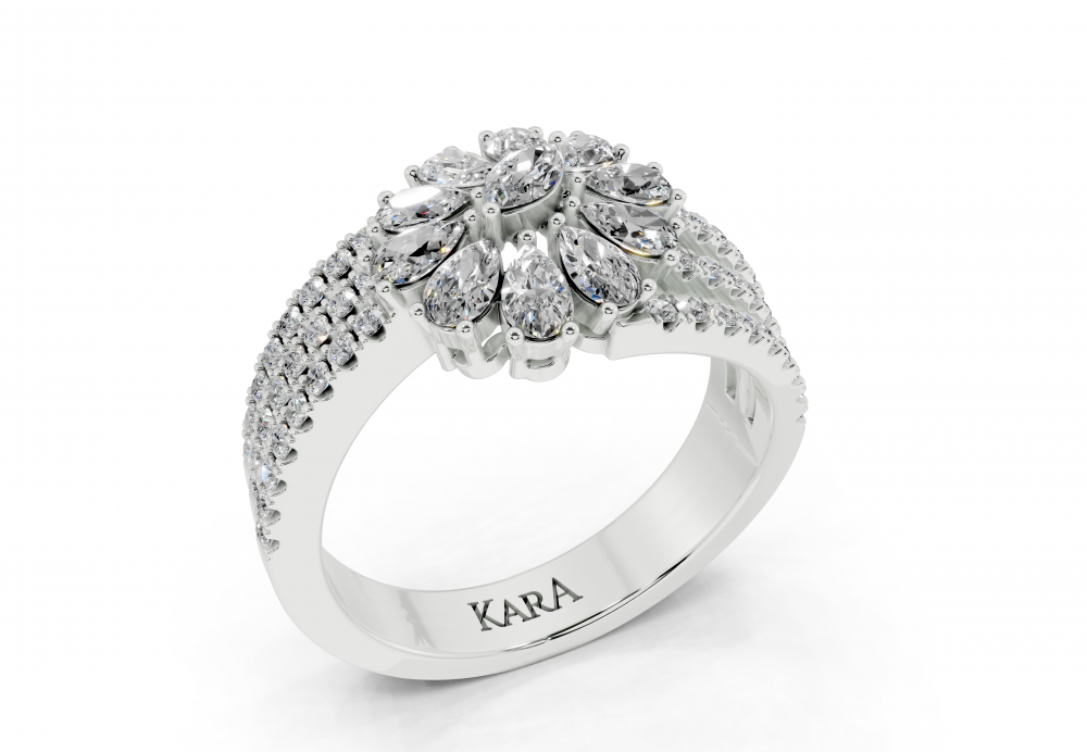 14K white gold ring, with 0.66ct Pear Cut diamonds, 0.06ct Marquise Cut diamonds and 0.33ct round diamonds. Ring weight is approximately 6 grams. Go to "Specifications" for more details about this product.