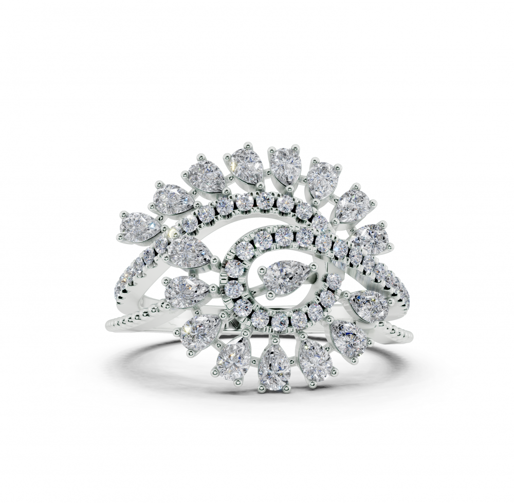 14K white gold ring with 0.88ct Pear Cut diamonds and 0.27ct round diamonds. Ring weight is approximately 4 grams. The ring can also be made to order in 18K gold. We can modify the design according to your budget.