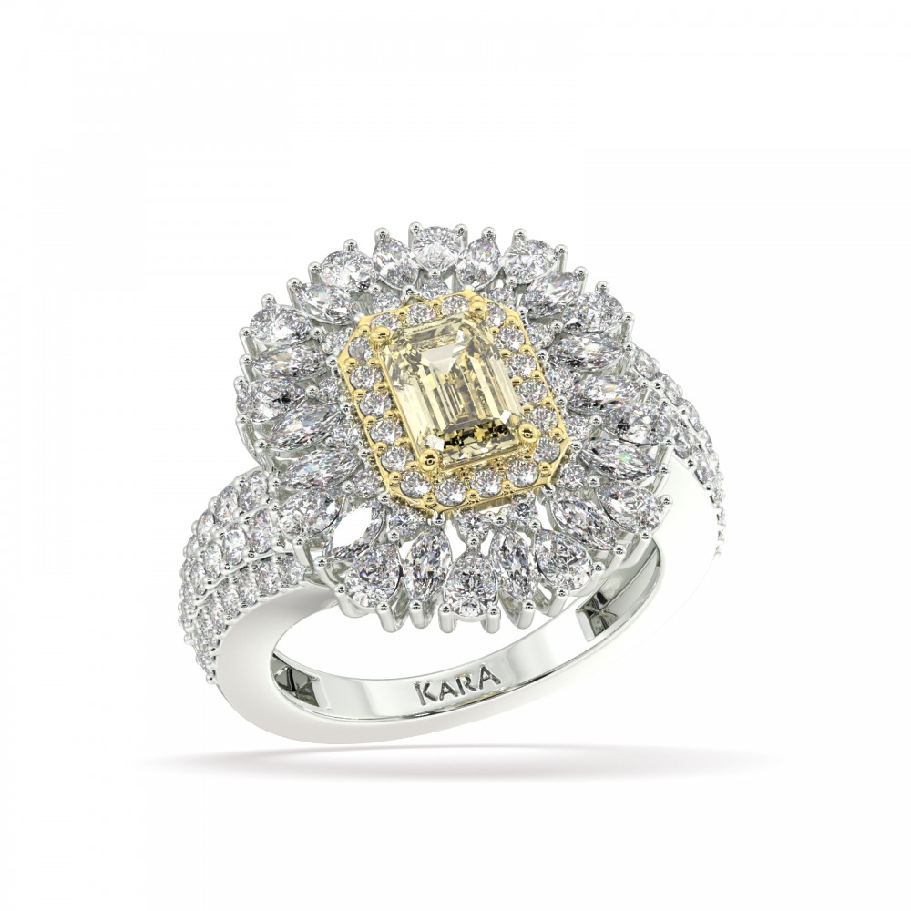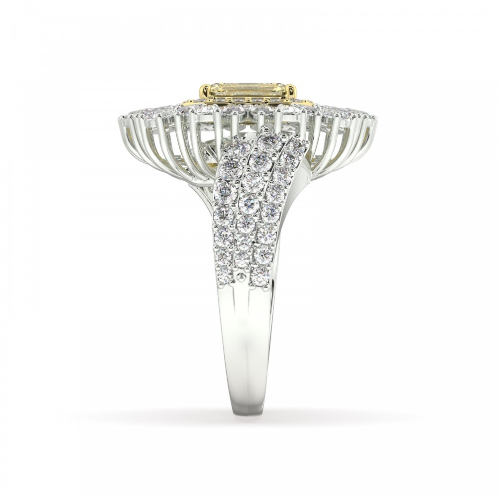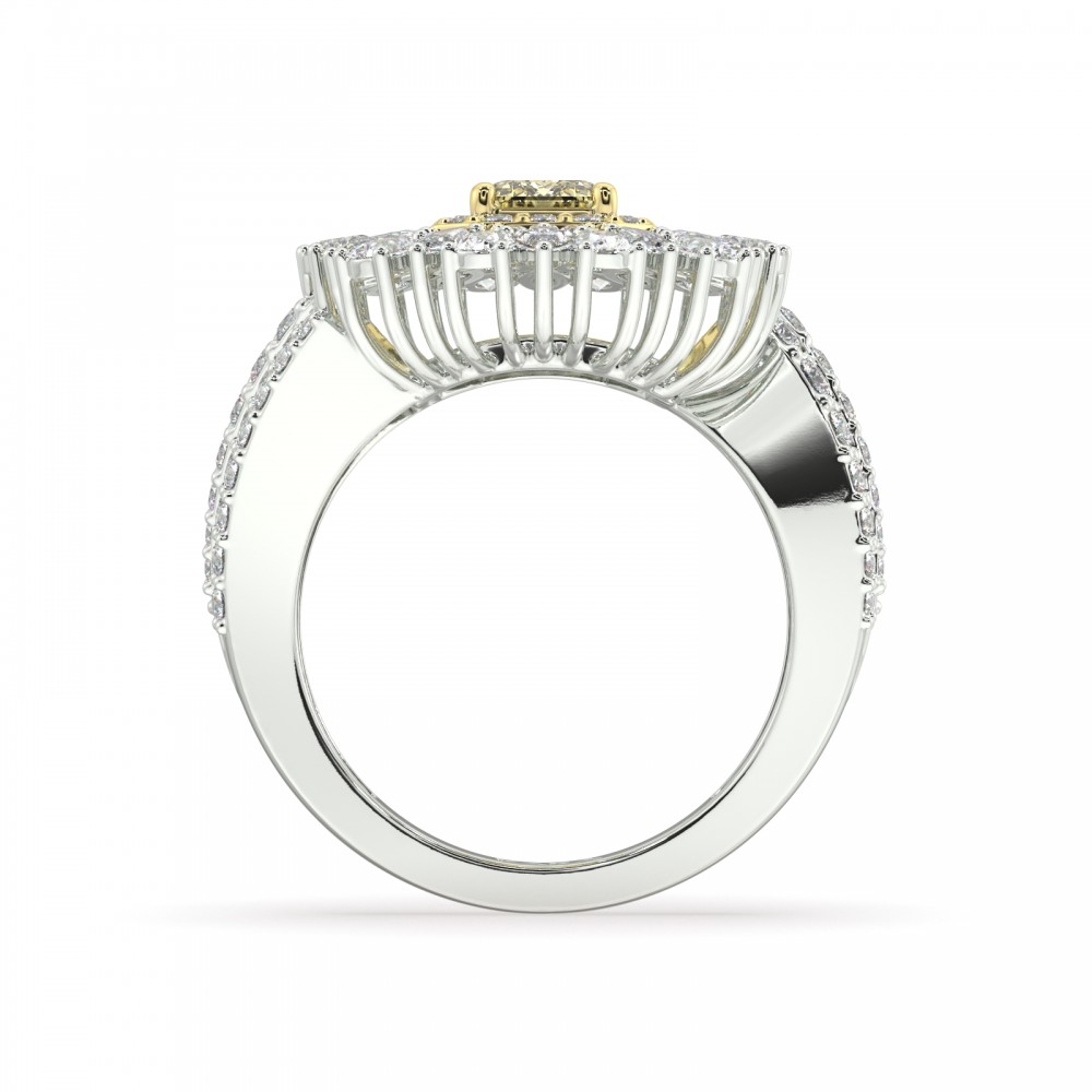 14K white gold ring with 0.90 ct Fancy Diamond and 1.72 ct Mix Diamonds. Ring weight is 6.58 grams.