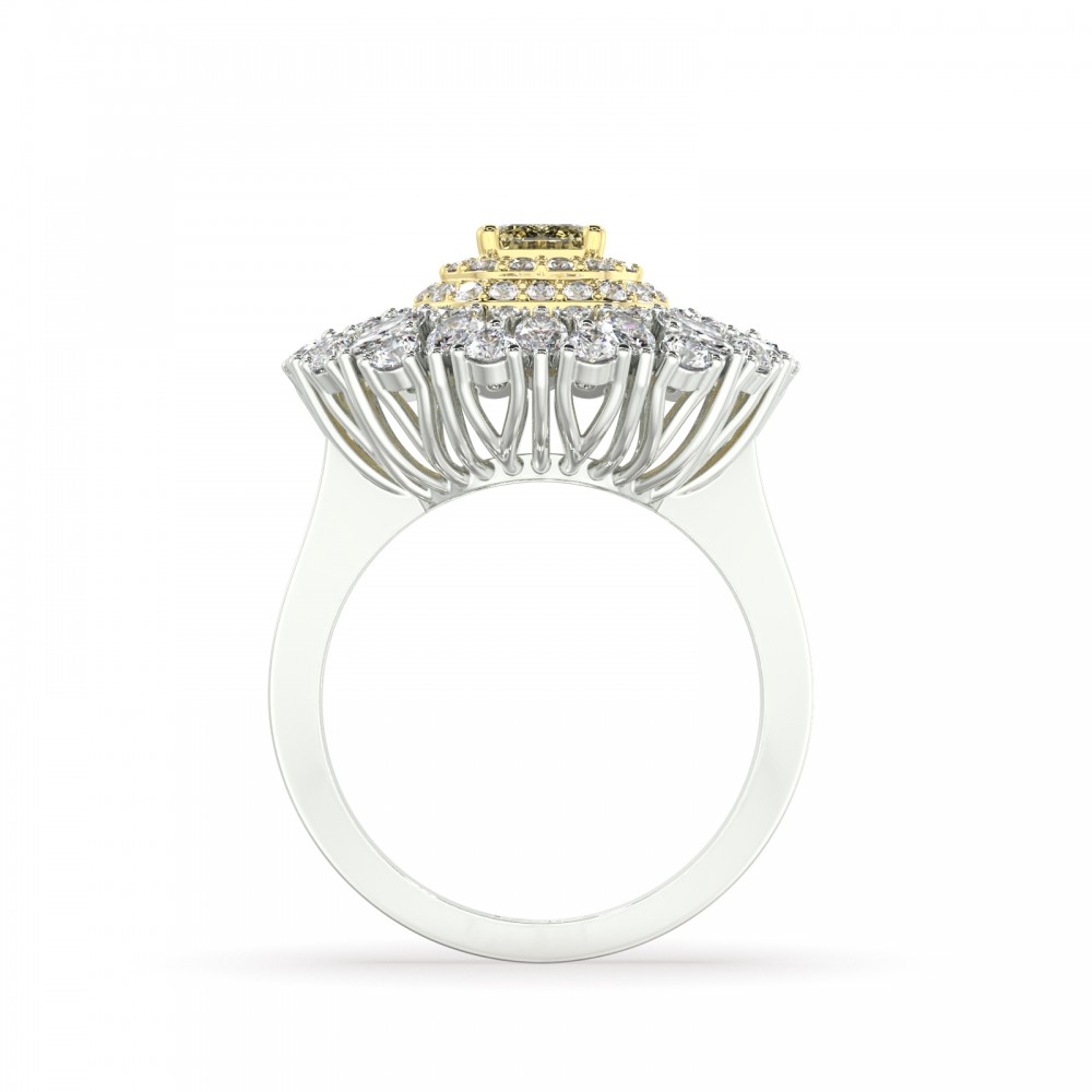 14K white gold ring with 0.91 ct Fancy Diamond and 2.41 ct Mix Diamonds. Ring weight is 8.35 grams.