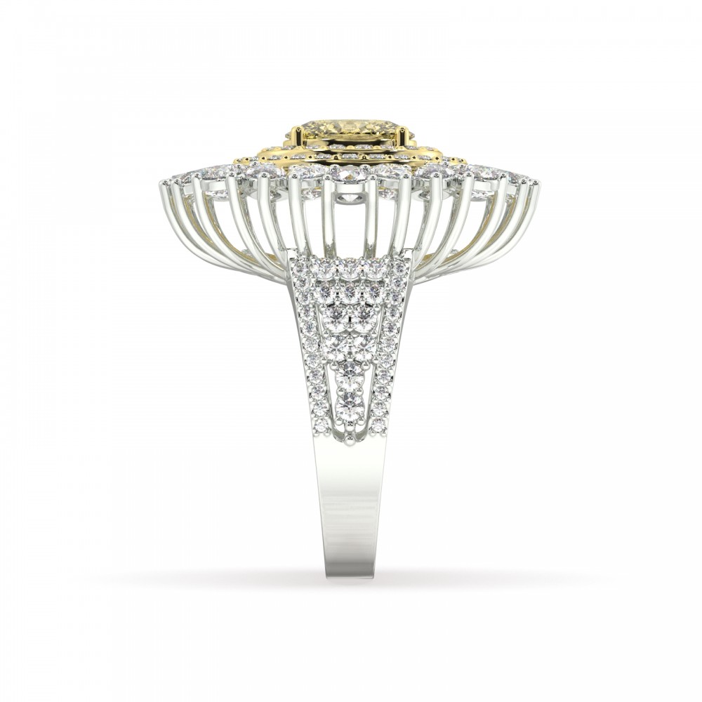 14K white gold ring with 0.92 ct Fancy Diamond and 2.65 ct Mix Diamonds. Ring weight is 9.14 grams.