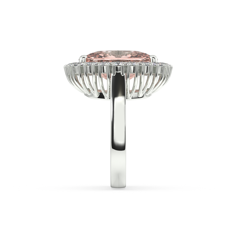 14K white gold ring with a 12.08ct Morganite Cushion Cut center 12.08ct and 1.17ct round diamonds on the sides. Ring weight is approximately 10.20 grams. We can modify the design to suit your budget. We can choose the characteristics of the diamonds (cut, color, clarity, carat) to create the...