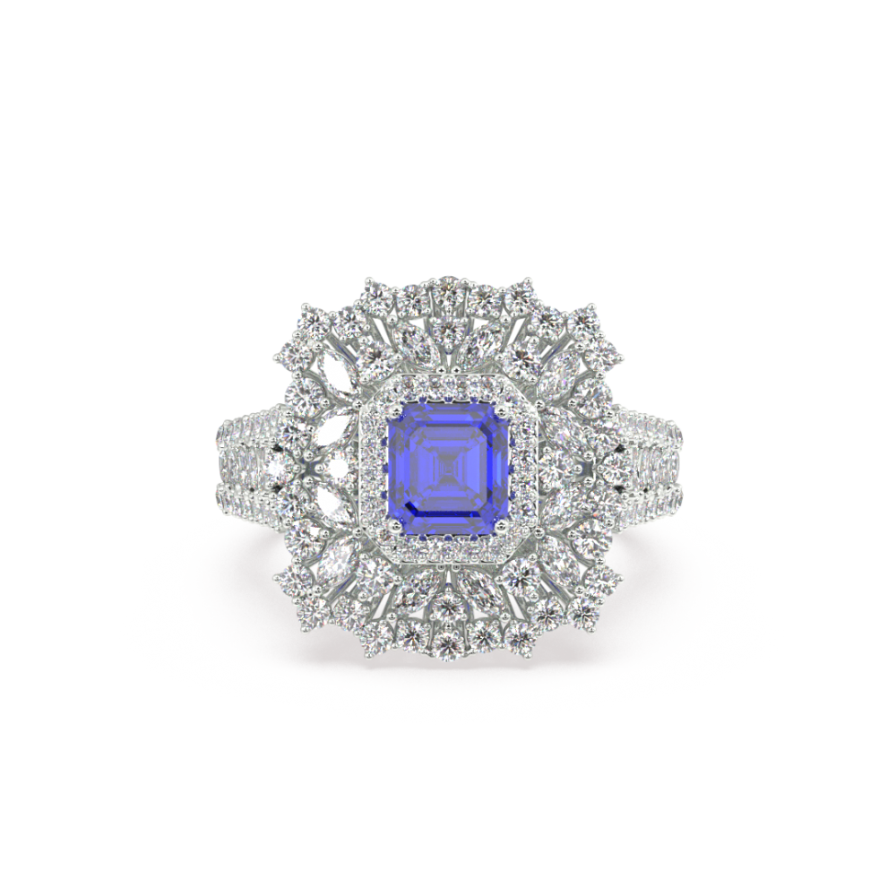 14K white gold ring with 1.30 ct Mix diamonds and 1.04 ct Tanzanite. Ring weight is approximately 7.00 grams.