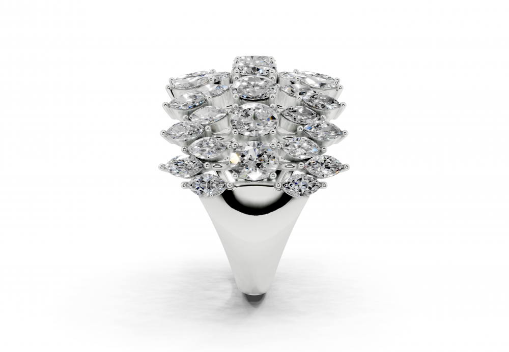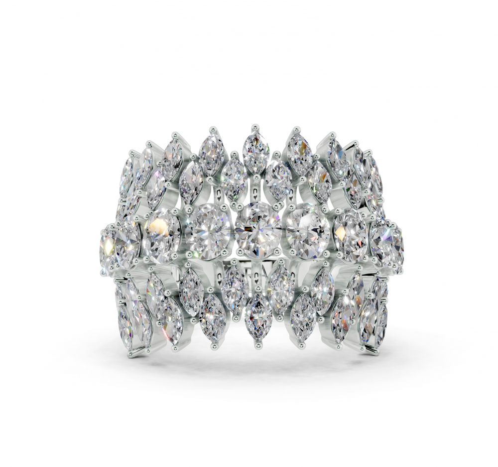 14K white gold ring with 1.42ct Marquise Cut diamonds and 1.16ct Oval Cut diamonds. Ring weight is approximately 6.50 grams. The ring can also be made to order in 18K gold. We can modify the design according to your budget.