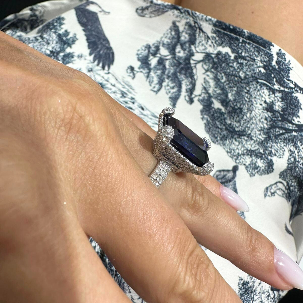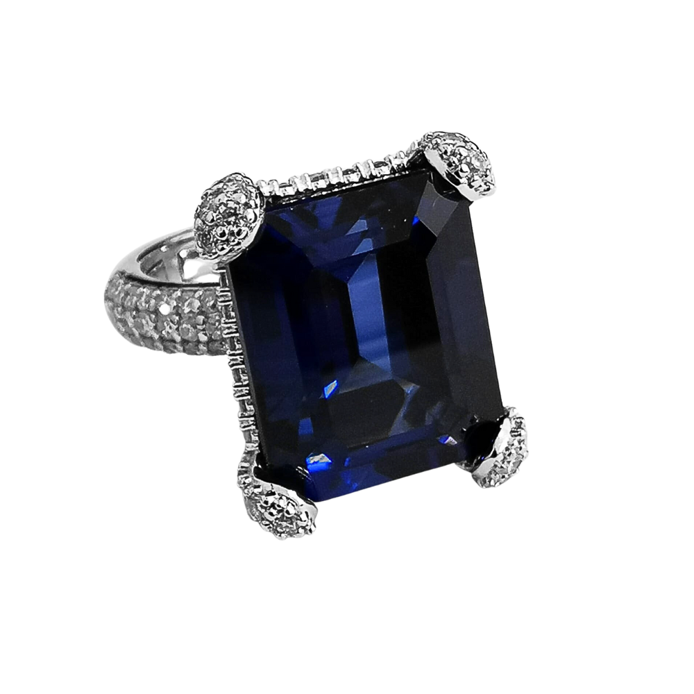 14K white gold ring with 1.87 ct Diamonds and 16.70 ct Quartz. Ring weight is 11.84 grams.