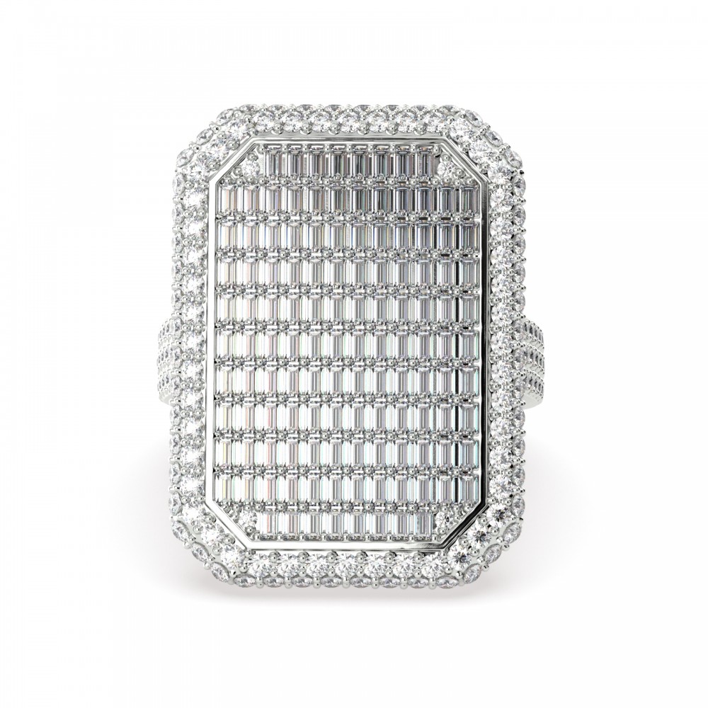 18K white gold diamond ring with 1.98ct baget diamonds and 1.11ct round diamonds. The weight of the ring is 9.49 grams. The ring can also be made to order in 14K gold. We can modify the design according to your budget. We can choose the characteristics of the diamonds (cut, color,...