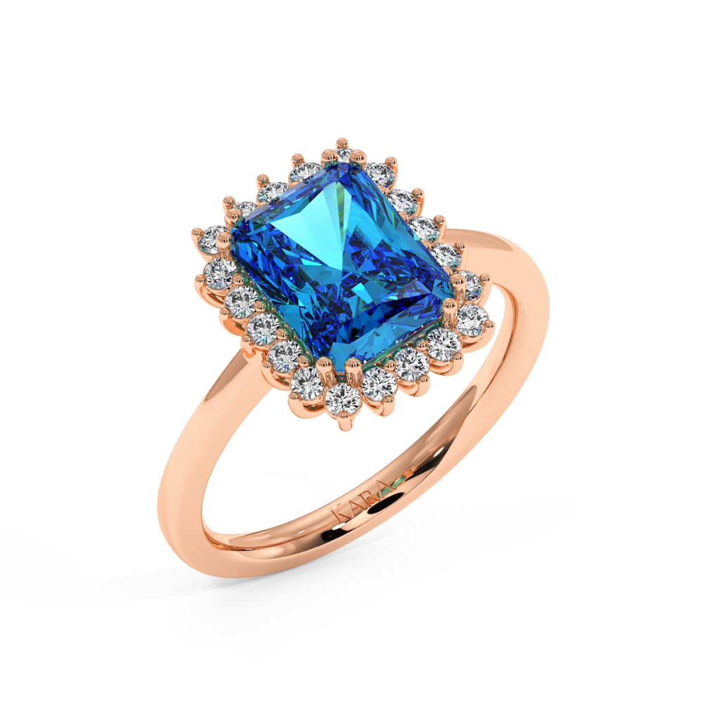 Blue Topaz ring, 14 K white gold, with 1 Blue Topaz of 2.87 ct and 0.40 ct diamonds. Ring weight is 3.76 grams.