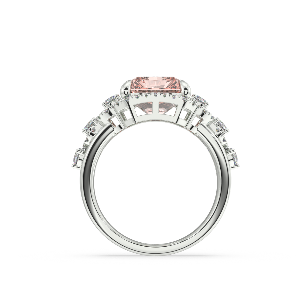 14K white gold ring, with 6.14ct center Radiant Cut Morganite and 0.83ct round diamonds on the sides. Ring weight is approximately 8.20 grams. We can modify the design to suit your budget. We can choose the characteristics of the diamonds (cut, color, clarity, carat) to create the perfect...