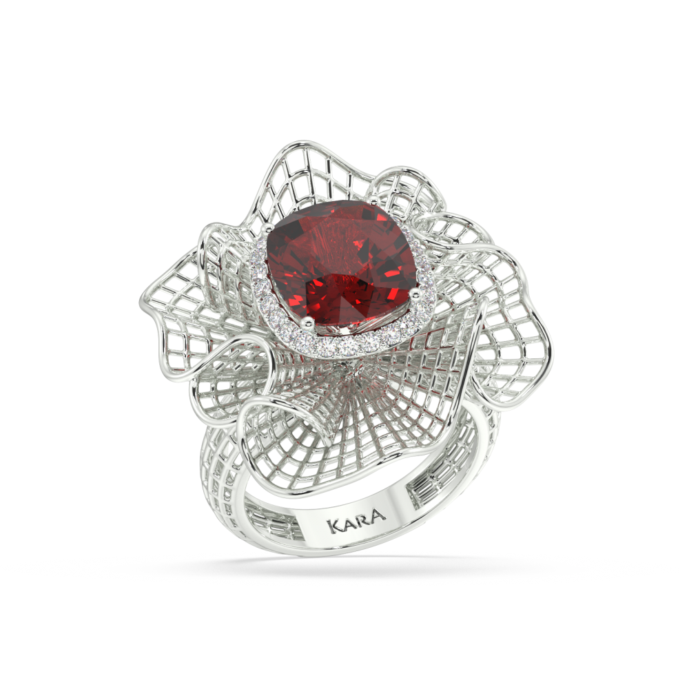 Ring in 14K white gold, with side diamonds of 0.21 ct and central ruby of 6.20 ct. Ring weight is approximately 12.50 grams. We can modify the design according to your budget. We can choose the characteristics of the diamonds (cut, color, clarity, carat) to create the perfect diamond ring....