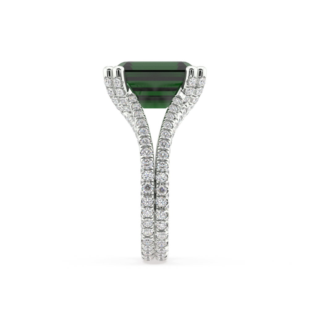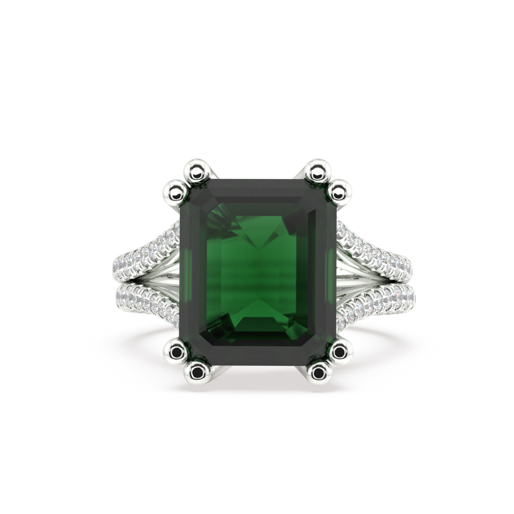 14K gold ring with 8ct Green Citrine Central Emerald Cut Emerald and 2.03ct round side diamonds. Ring weight is approximately 8.30 grams. The ring can also be made to order in 18K gold. We can modify the design according to your budget. We can choose the characteristics of the diamonds (cut,...