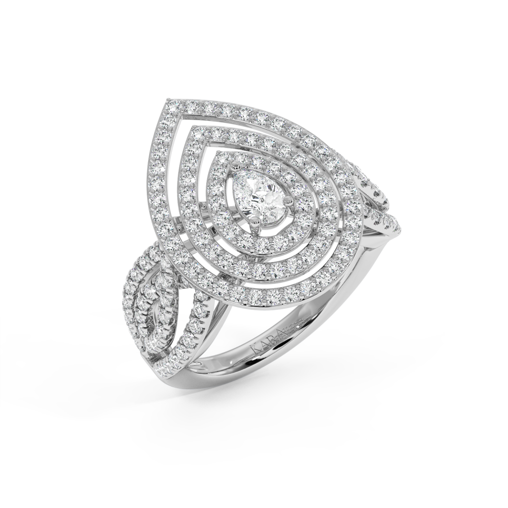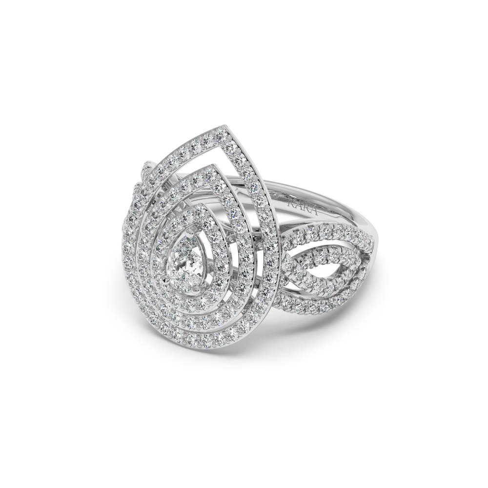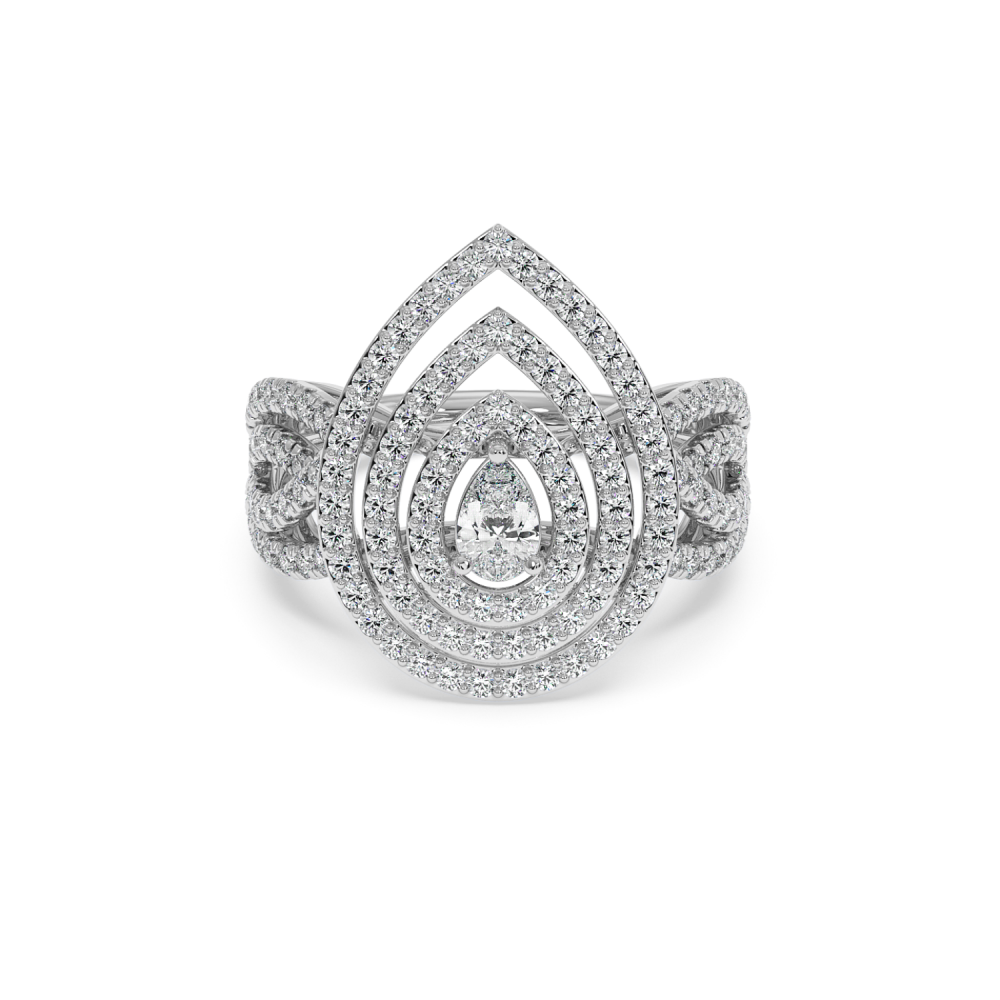 Ring with a 0.25ct Central Pear Cut Diamond and 1.21ct Lateral Round Diamonds