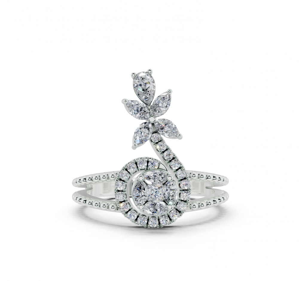 14K white gold ring with 0.25 ct Marquise diamonds, 0.09 ct Pear diamonds, 0.04 ct Princess diamonds and 0.13 ct round diamonds. Ring weight is approximately 3.5 grams.