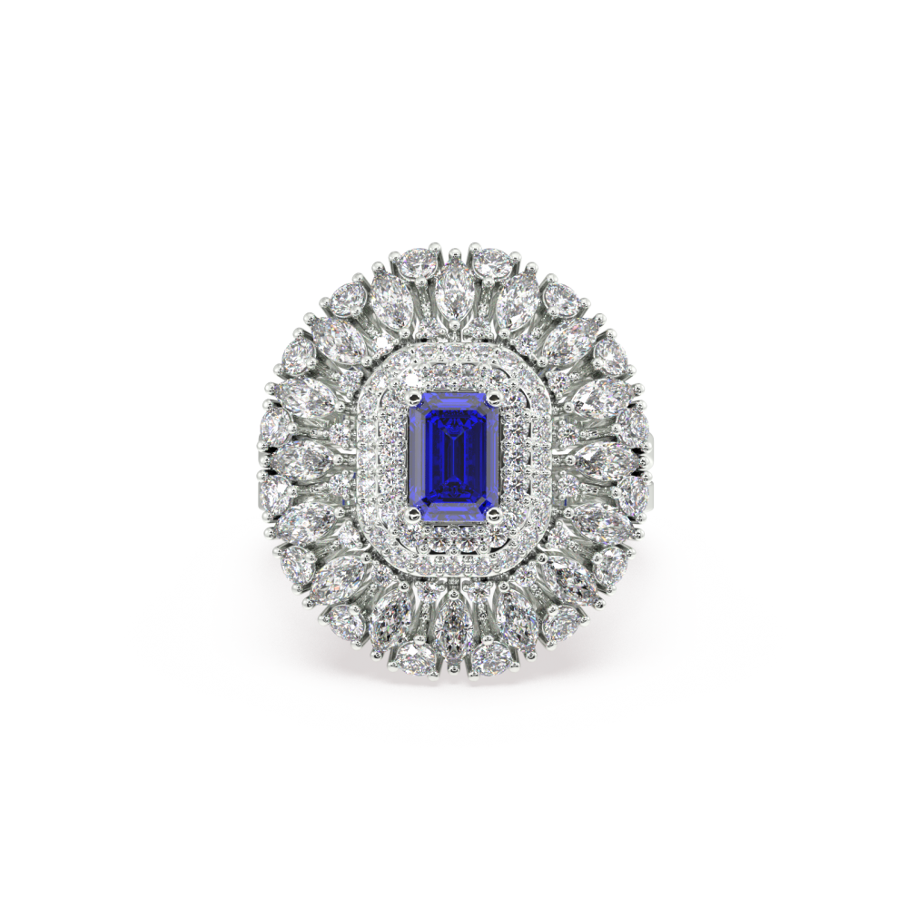 14K white gold ring with 1.60 ct Mix diamonds and 0.76 ct Tanzanite. Ring weight is approximately 8.80 grams.