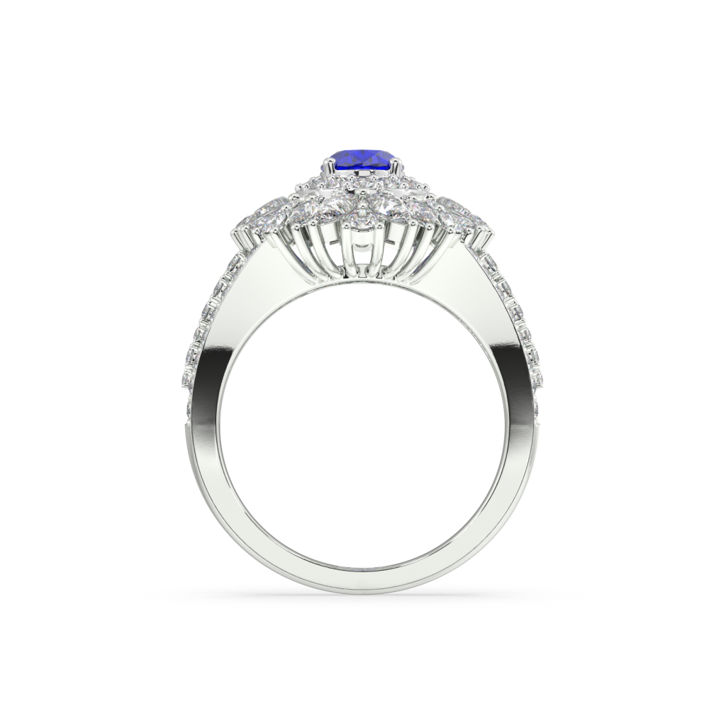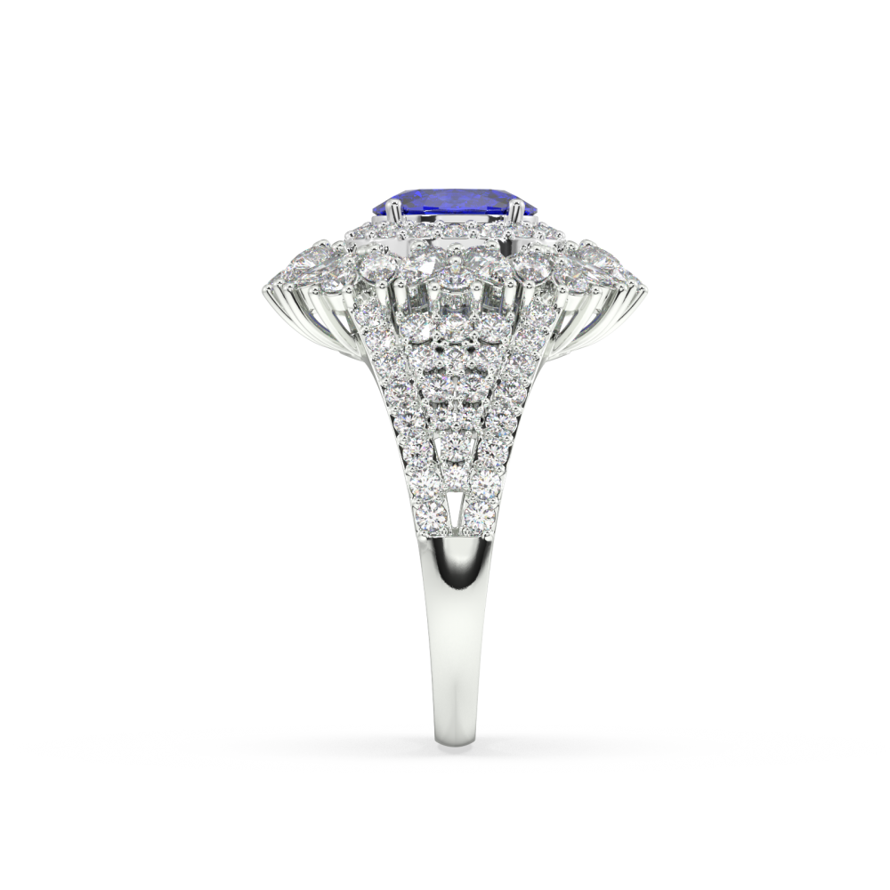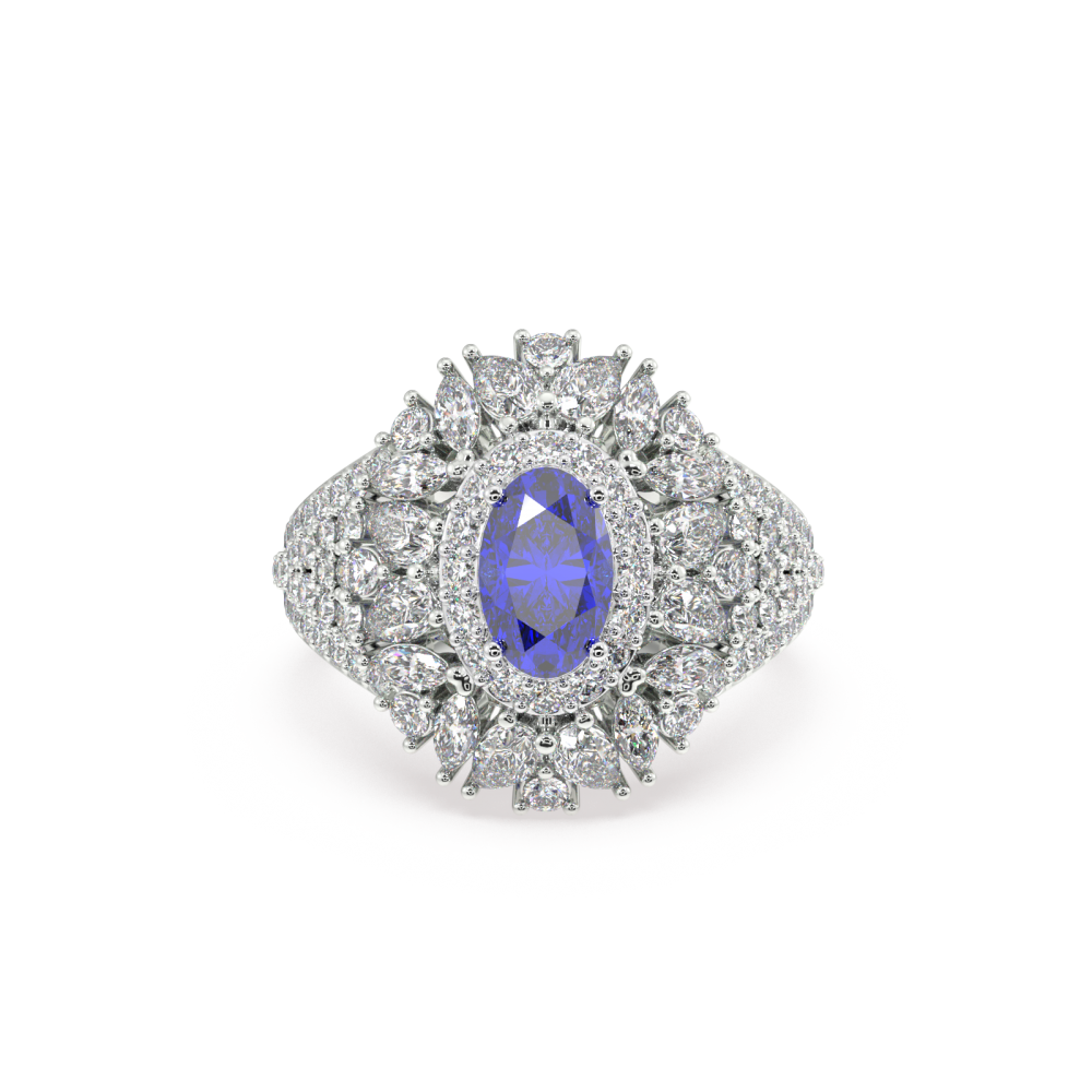 14K white gold ring with 1.60 ct Mix diamonds and 0.94 ct Tanzanite. Ring weight is approximately 7.60 grams.