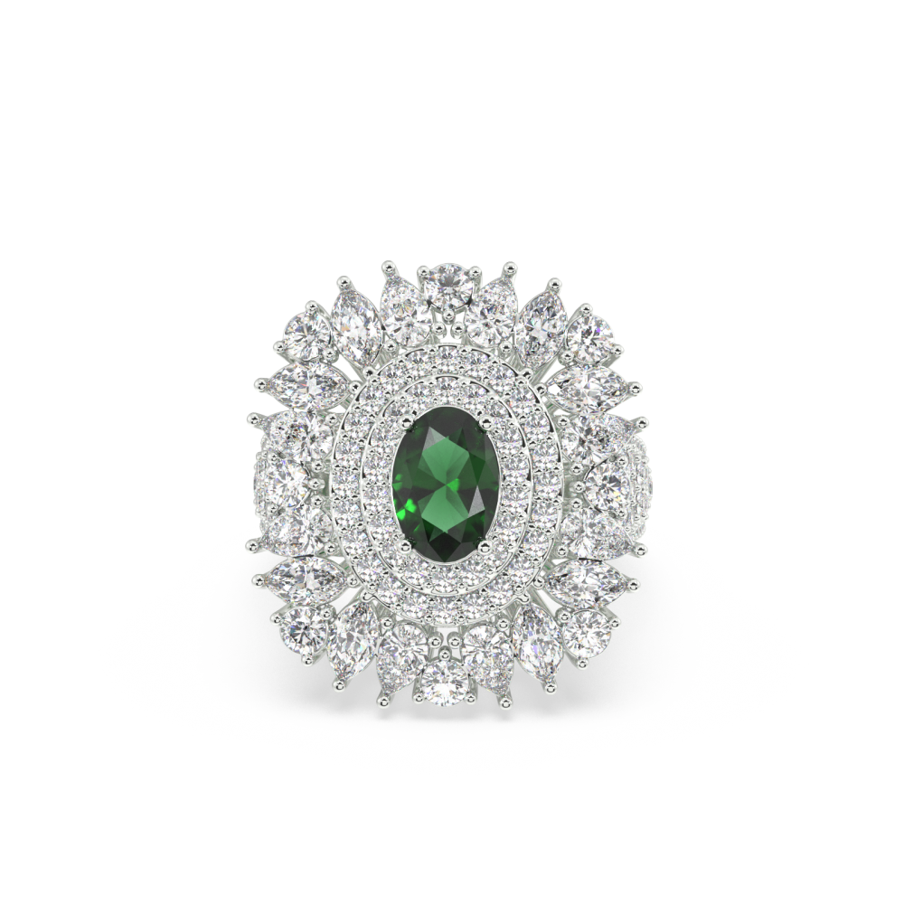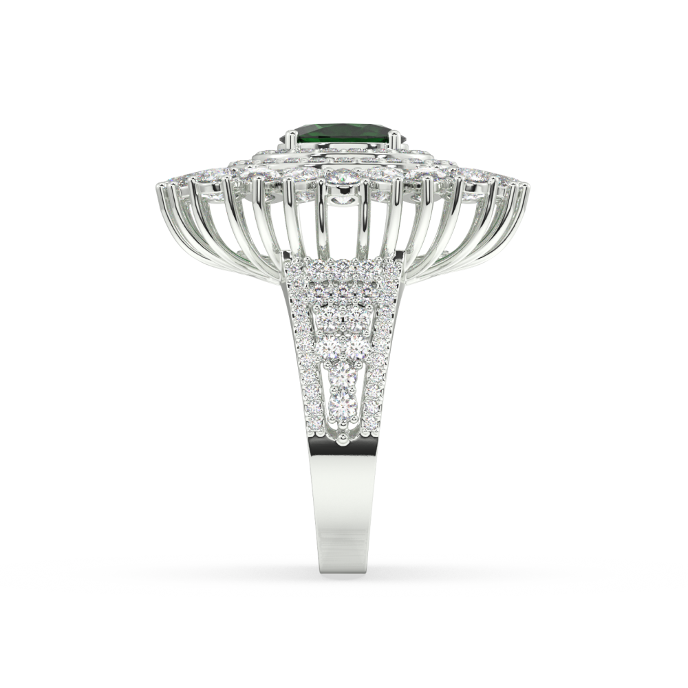 14K white gold ring with Mix diamonds of 2.59 ct and Emerald of 0.92 ct. Ring weight is approximately 7.20 grams.