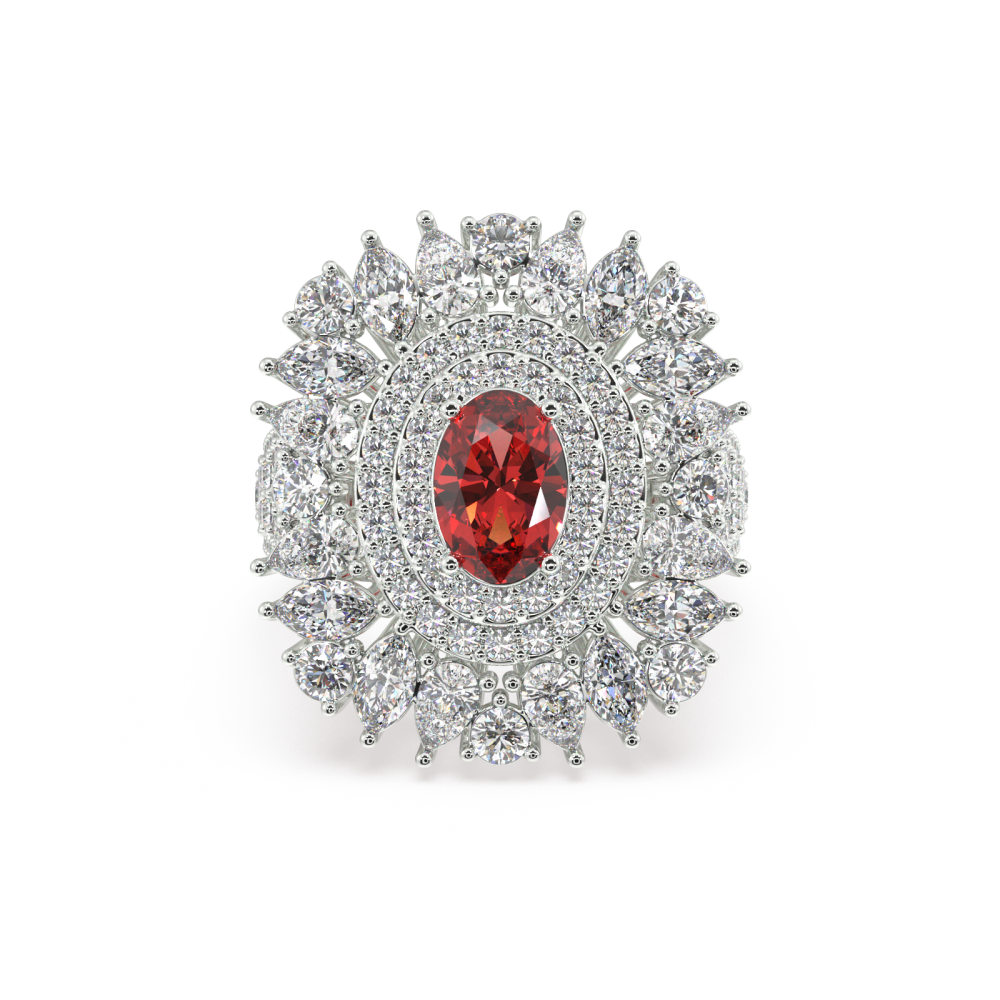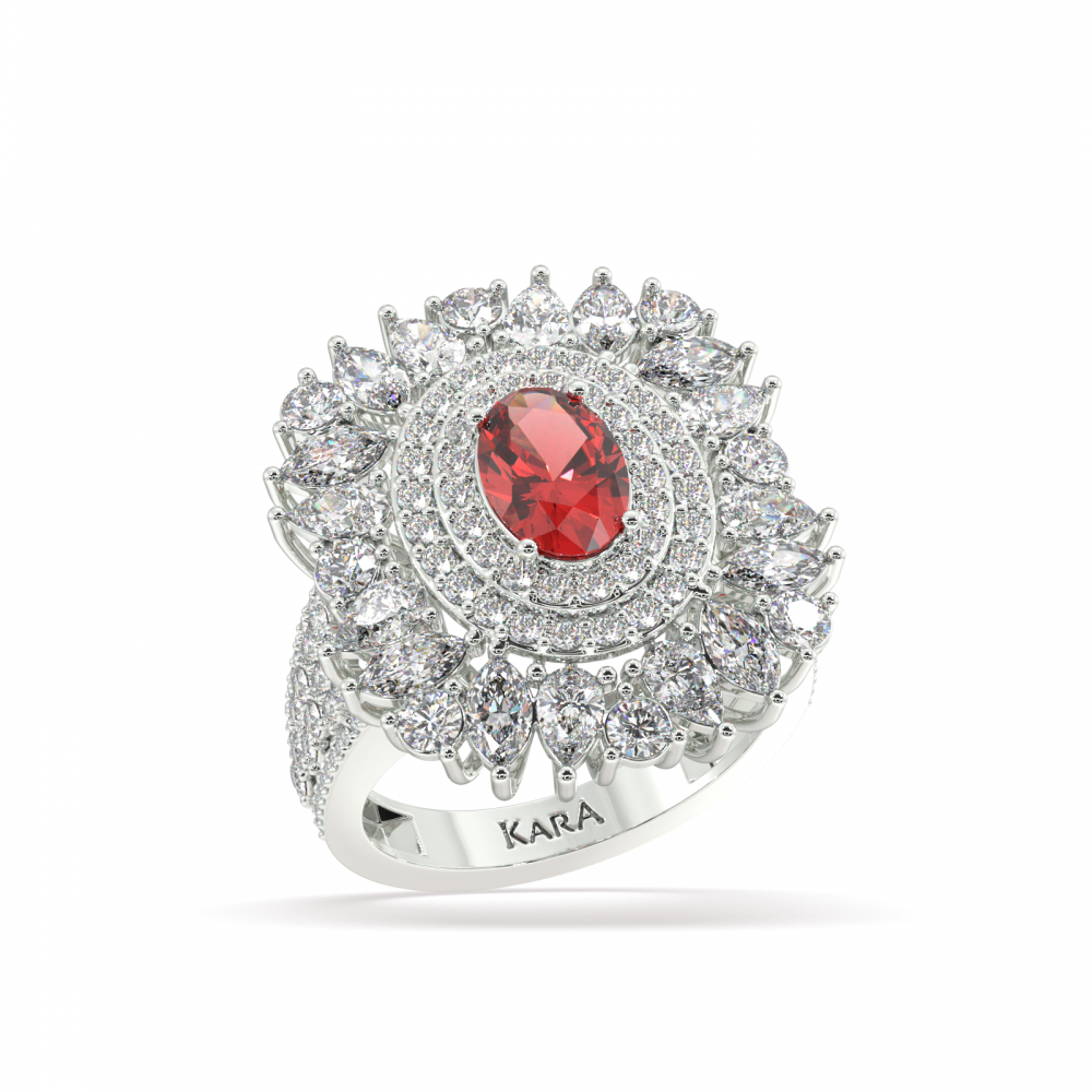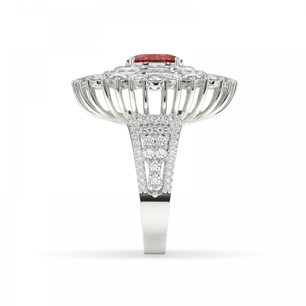 Ring in 14K white gold with Mix diamonds of 2.59 ct and Ruby of 0.92 ct. Ring weight is approximately 7.20 grams.