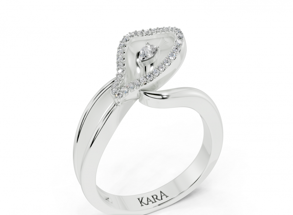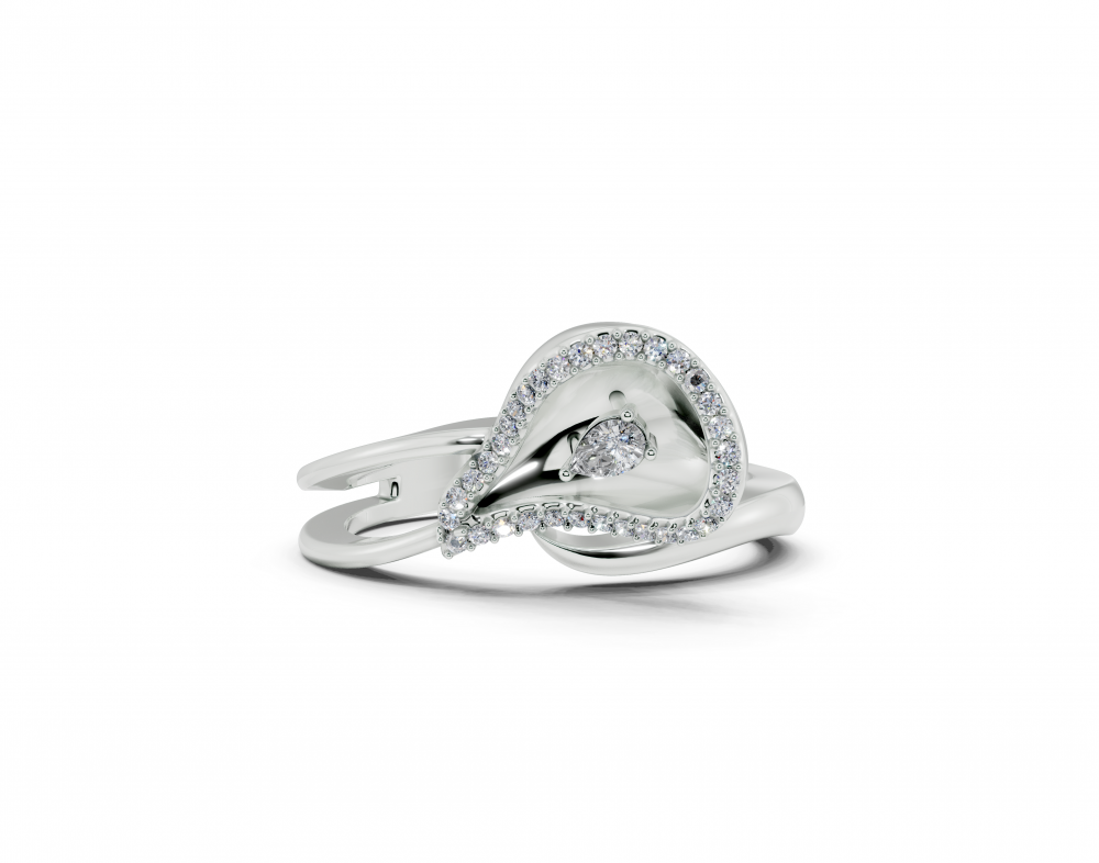 14K white gold ring with 0.05ct Pear Cut diamonds and 0.06ct round diamonds. Ring weight is approximately 4 grams. The ring can also be made to order in 18K gold. We can modify the design according to your budget.
