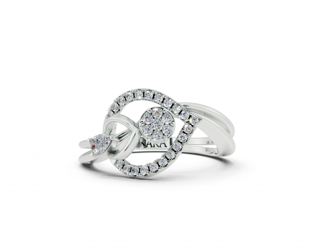 14K white gold ring with 0.08 ct Pear Cut diamonds and 0.16 ct round diamonds. Ring weight is approximately 3.00 grams. The ring can also be made to order in 18K gold. We can modify the design according to your budget.